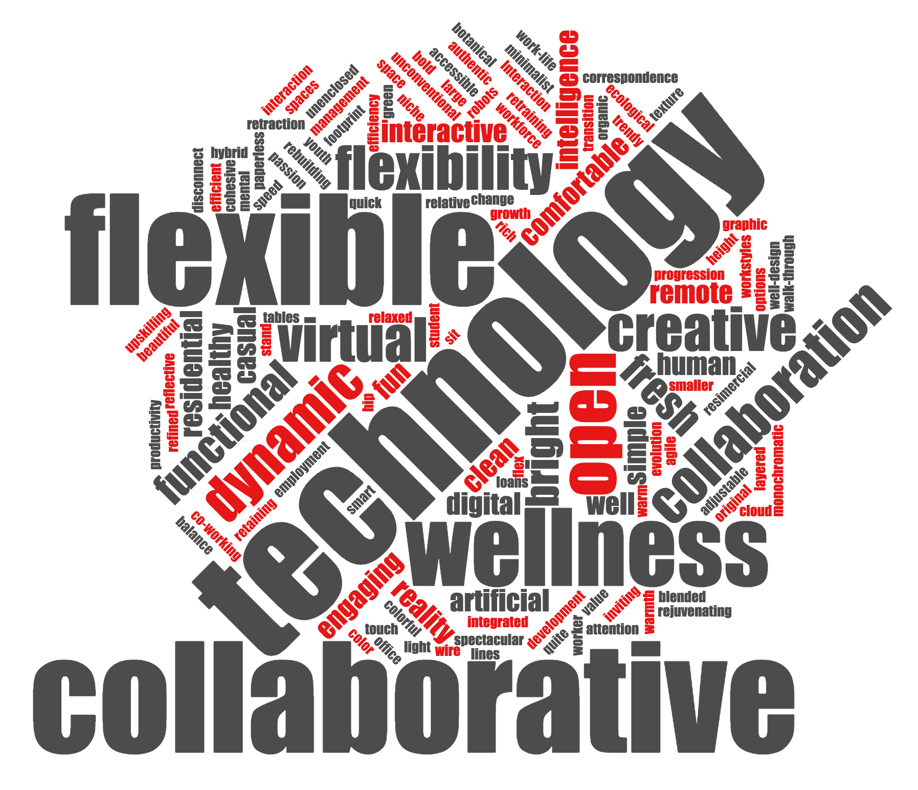 We asked 40 of our top workspace designers, sales consultants and leaders to come up with words that will shape 2018 workspaces. As you can see below, Technology, Collaboration, Flexibility and Wellness will be front and center next year!