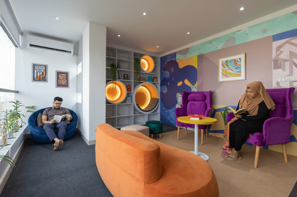 A digital detox area helps employees disconnect and recharge, boosting creativity.