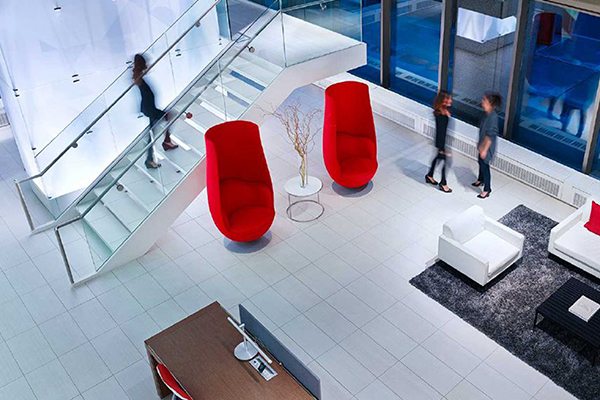 “I think it is one of the most comfortable lounge pieces and can address various aesthetics with the leather color application. For example, we could use a brown/black leather for a high-end executive office. Or, we can use a fun pop of red to really accent the piece and bring color to a space,” Erick Gama, Project Designer