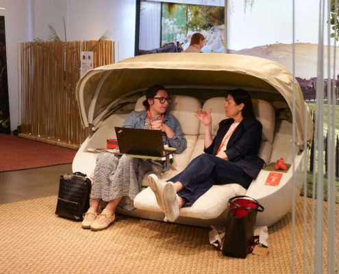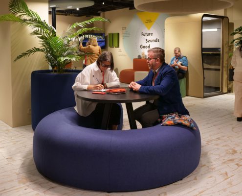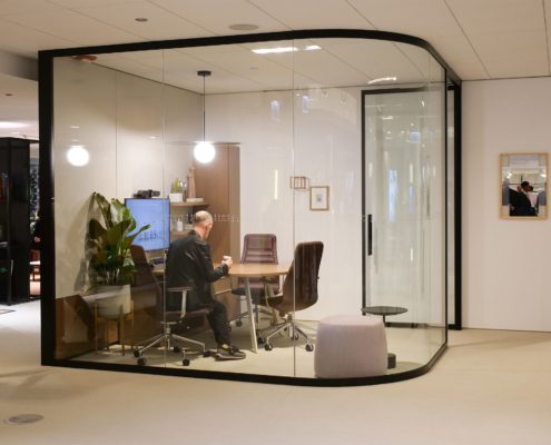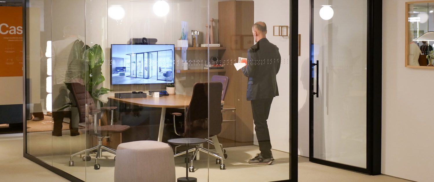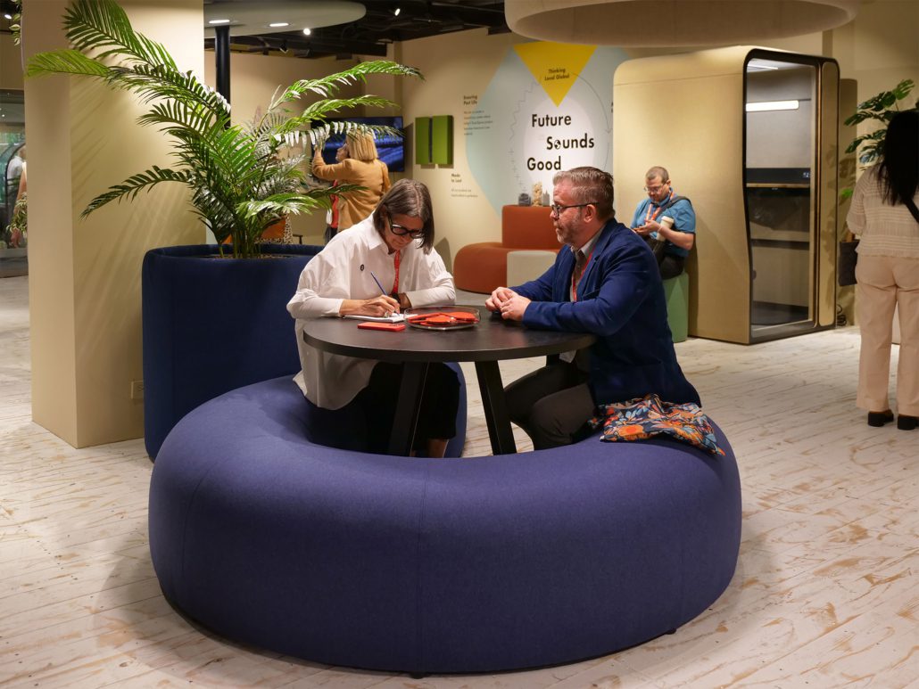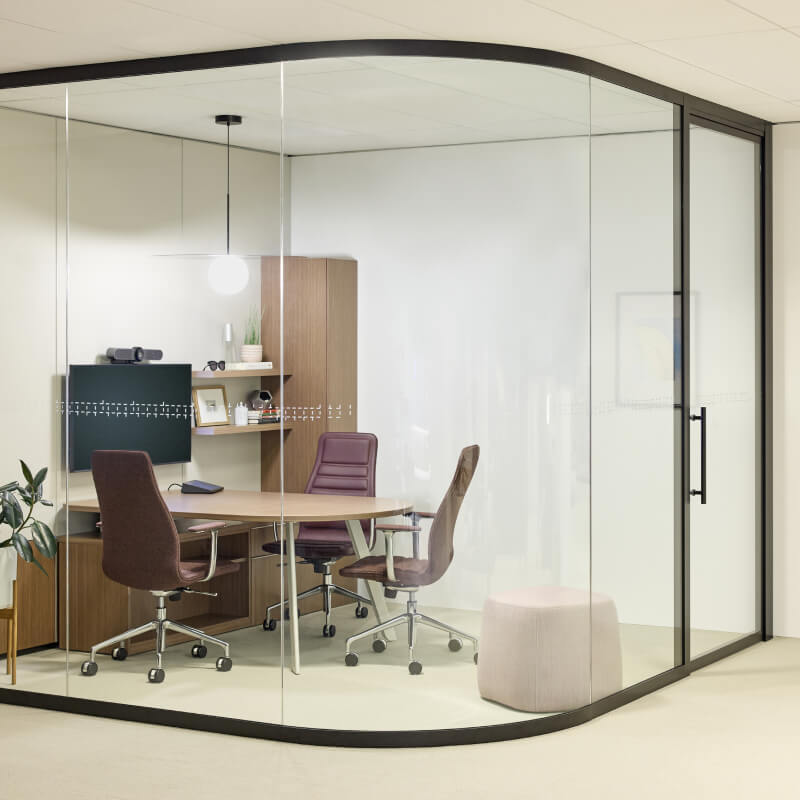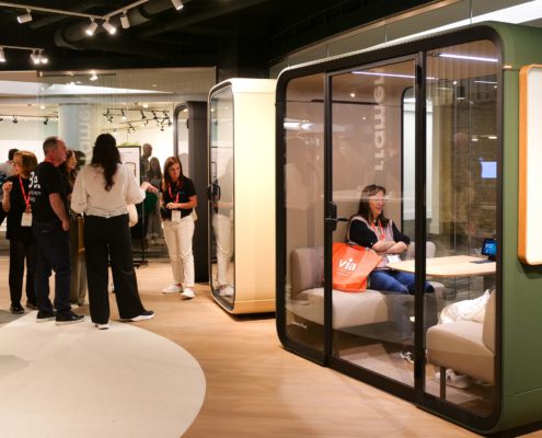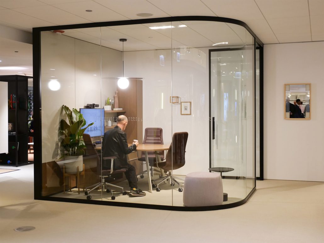 Scalable, sound-conscious “room within a room” solutions were everywhere—from Haworth’s Enclose, Trivati, and 4Space systems to pods by Hush and BuzziSpace. These modular systems reflect the demand for spaces that can flex with team needs while maintaining visual and acoustic privacy.