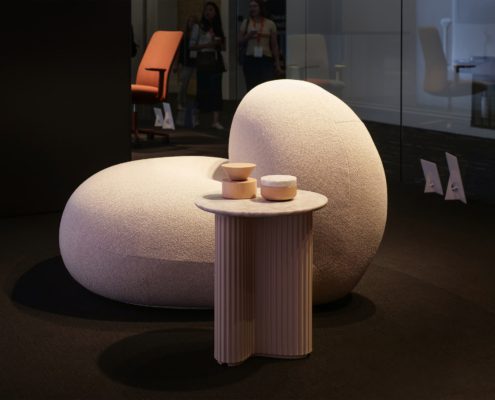 From desking to architectural walls, soft edges and organic shapes stole the show. Sharp corners and hard lines are officially out, replaced by furniture and partitions that feel more fluid and approachable. -