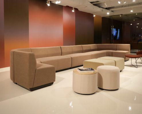Sustainability is no longer a feature—it’s a given. From bioplastics (like those seen in Haworth’s new products) to demountable architectural walls, products are being designed for longevity, reuse, and waste reduction. Replaceable cushions and modular parts reflect the growing demand for furniture that can evolve with a space. -