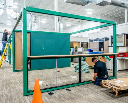 With an award winning catalog, manufactured in the USA, easy to specify, install, and reconfigure, and it complements base building architecture without the permanence of construction. It is a easy reason for us to get one and you should to! Scroll to see pictures and learn more about it!