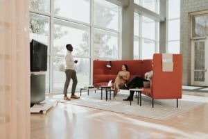 Open, flexible space for a variety of activities and group sizes, a community space may offer access to technology, refreshments, and comfortable furnishings. Flexible furniture accommodates different types of collaboration, including activities that inform and connect.