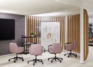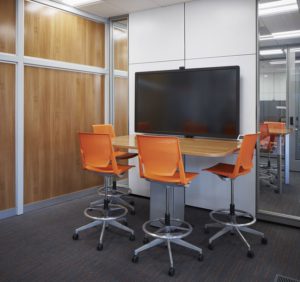 Designated as areas for collaborative and brainstorming activities, conference and meeting spaces support structured interactions. These spaces where teams execute strategies together accommodate a variety of needs utilizing both vertical displays and worksurfaces for sharing information.