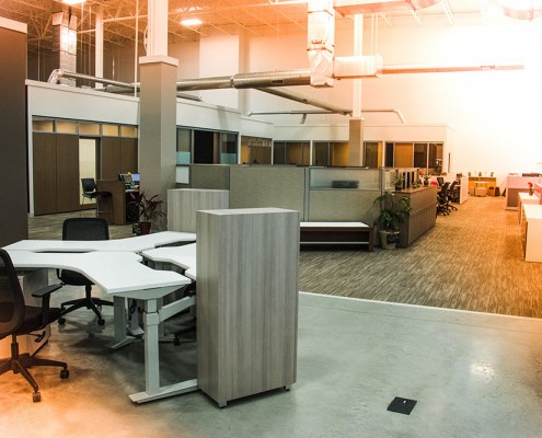 Chicago, IL, January 20, 2016: BOS Holdings has moved into a new Headquarters in Roselle, IL. Built and designed from the ground-up by the BOS Holdings team, the 150,000 square foot facility features the latest in workspace trends, collaborative technology, and sustainable furnishings. From an impressive public showroom to massive 35 foot high ceilings in the full-service distribution center and warehouse, the space allows BOS Holdings companies to offer 360º in-house deliverables including refurbishing, warehousing, and climate-controlled storage.