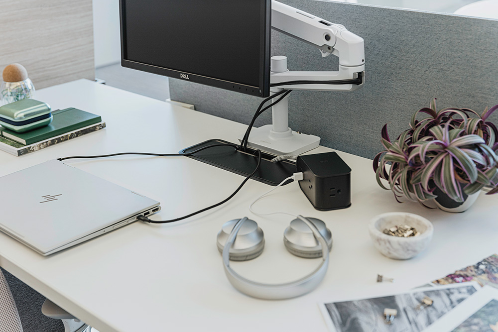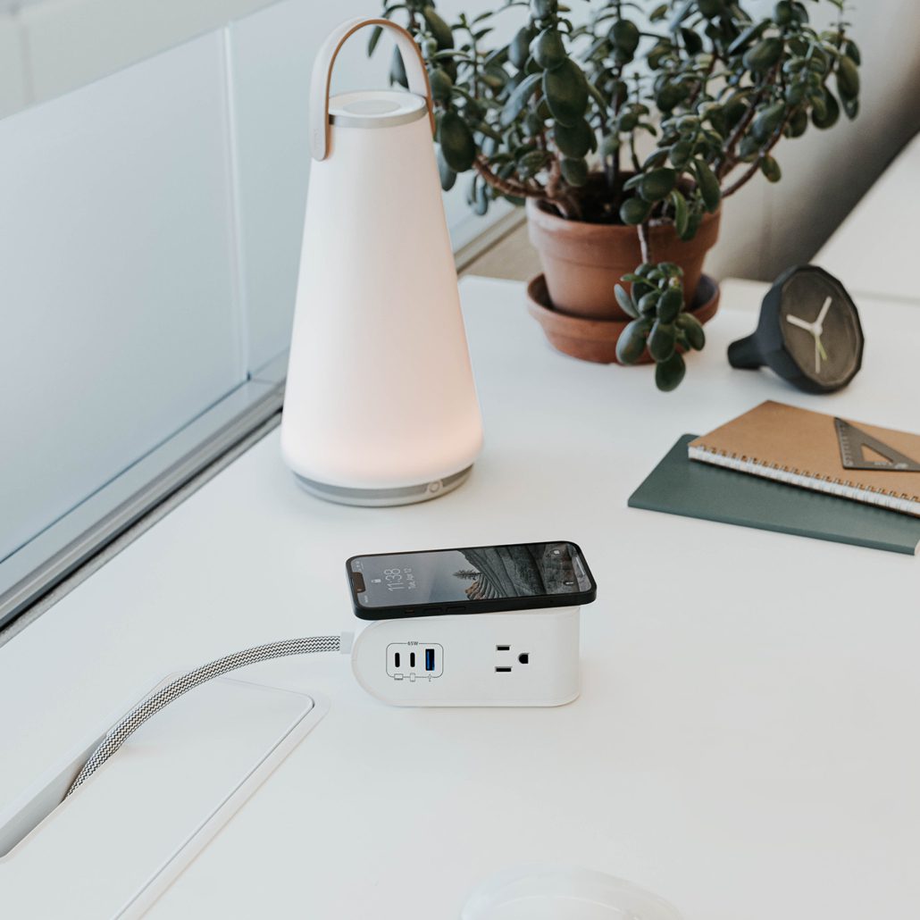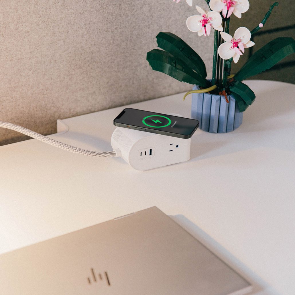 Charge and connect your devices with Belong Power Modules. They include the Power Cube, which has outlets, wireless charging, and USB-A and USB-C ports; the Power Strip, which has additional outlets—and the Belong Power Suite, which combines both. These 15W and 65W modules can be freestanding or mount on a workstationount