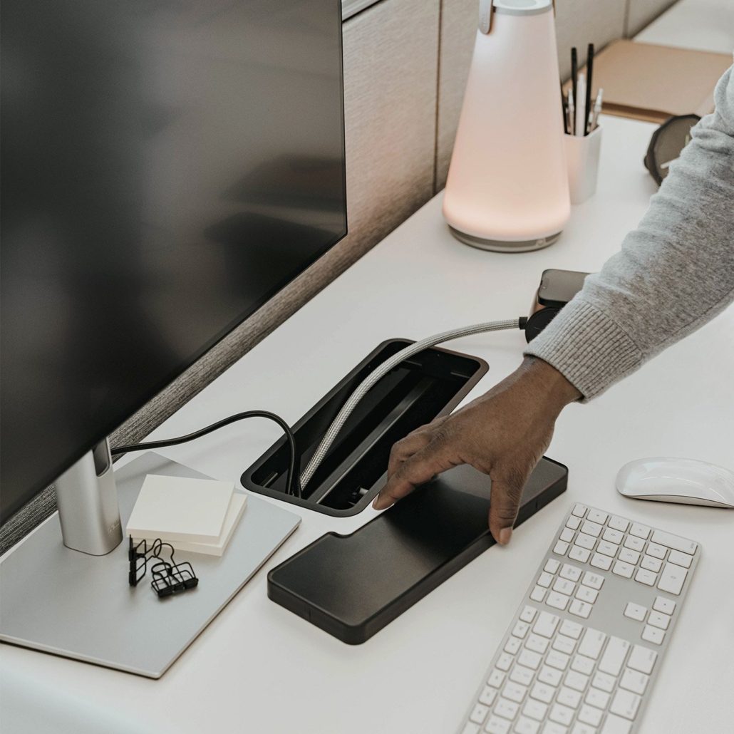 Experience a clutter-free desktop with Belong Hatch, an innovative built-in feature that moves power and charging cords off surfaces. The reversible cover sits flush with your desk or workstation, providing easy access to a power strip, charging blocks, or a storage tray. Belong Hatch not only enhances power cable organization but also opens up more space on your workstation, contributing to a more streamlined and efficient workspace.