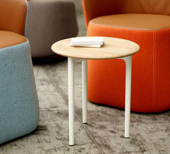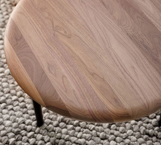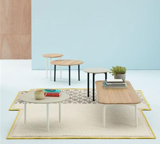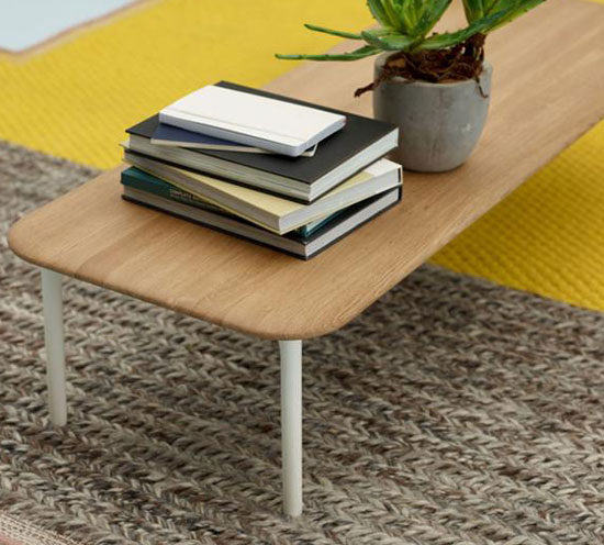 Designed to correspond with the scale, lines and colors of other Openest elements, Sprig tables can also easily stand on their own to make a design statement. Available in solid plank white oak or walnut, or with a painted finish, and complemented by painted aluminum legs.