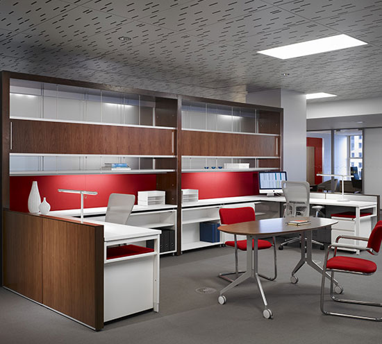 Based on an instinctively familiar form, Patterns elevates a simple folded plane into a sophisticated design. With its broad material options and an anodized aluminum inlay, Patterns injects a level of refinement while allowing for customization. From sleek, low benches and clean studio desking to architecturally intriguing workwalls and portals, Patterns offers a new dimension to the floorplate. Use Patterns to create unique interiors and eliminate the sea of sameness.