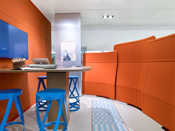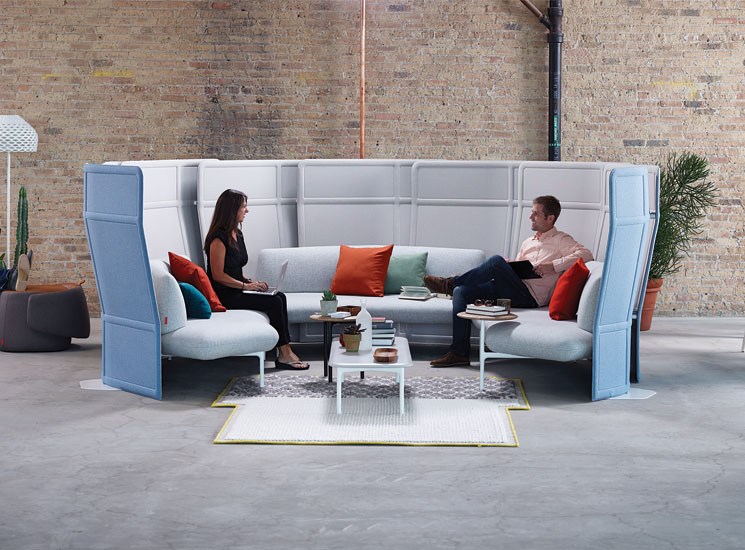 Plume screens present tremendous flexibility for designing collaborative spaces. These freestanding space dividers soften space and diffuse sound to encourage easygoing interaction.