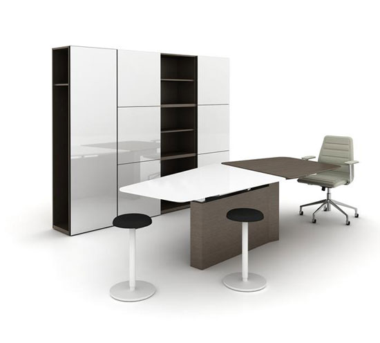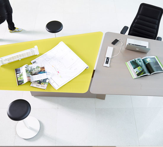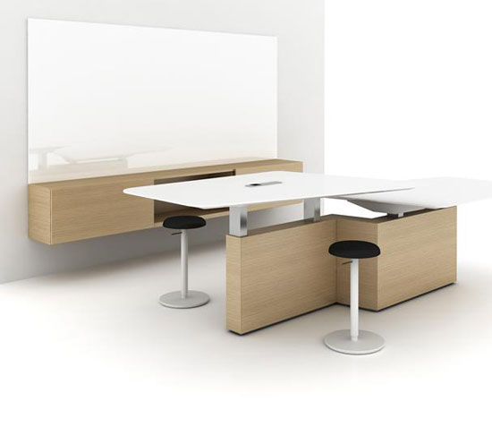 With the ability to include height-adjustable surfaces, upper and lower storage options along with multiple table shapes and edges; you have the ability to create a space that meets your evolving needs.