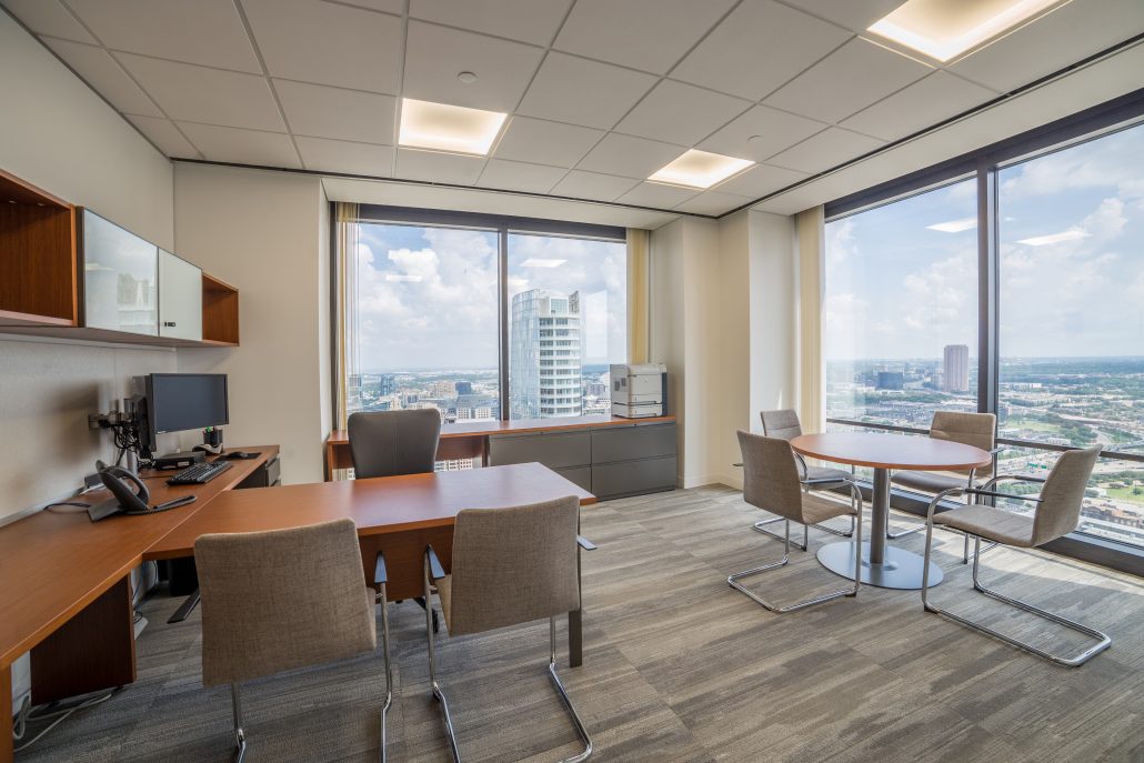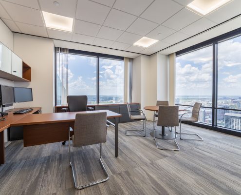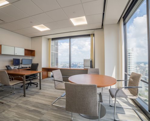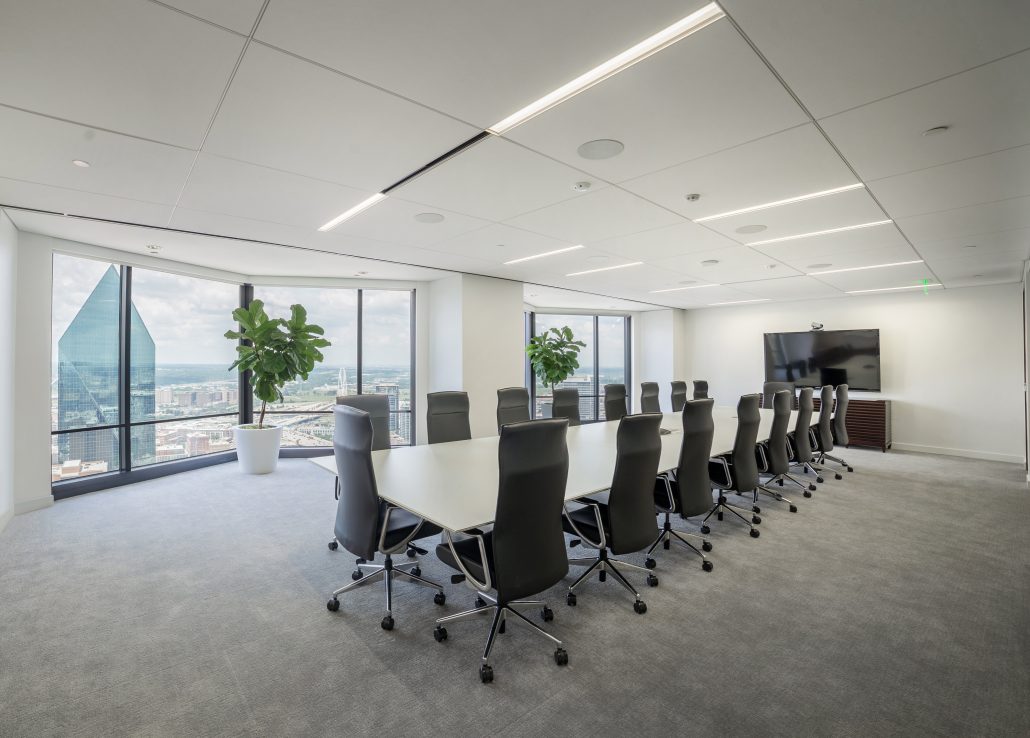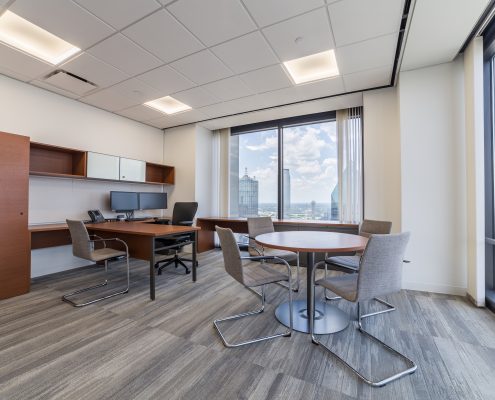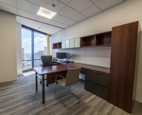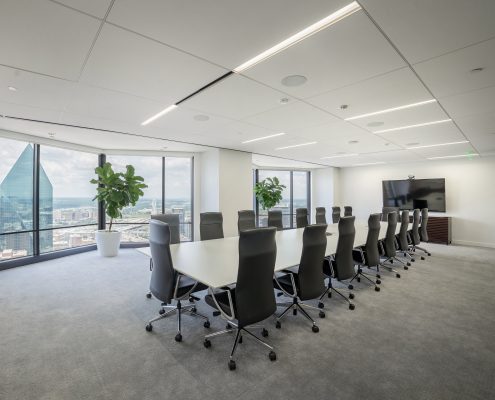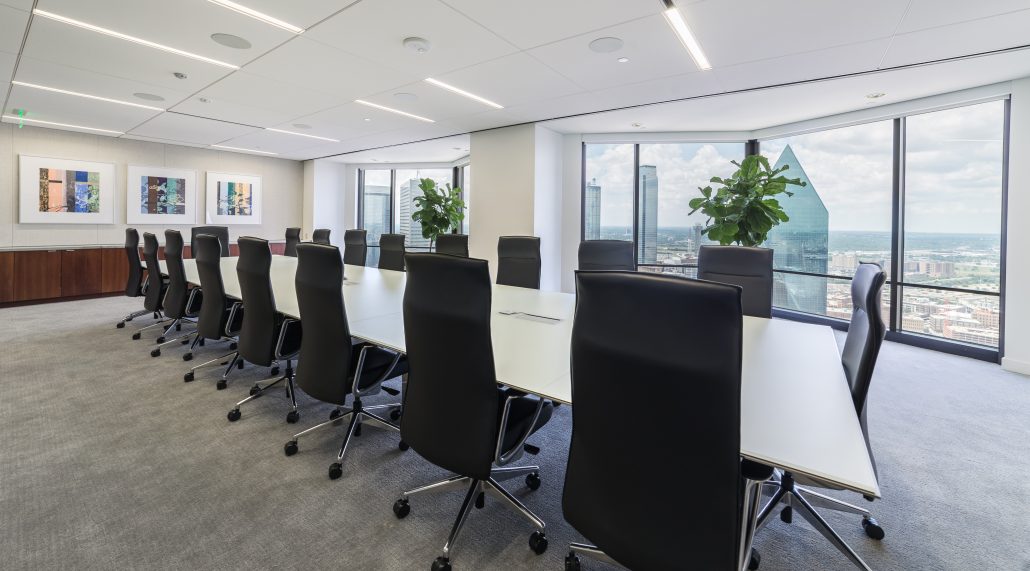 BOS partnered with Akerman LLP to expand their downtown Dallas office into an entire new floor in the Trammel Crow Center. The new space reflects a contemporary, professional aesthetic with 43 paralegal and attorney offices, 12 admin stations, 5 formal conference rooms, a cafe and a collaborative space with Haworth’s Workware technology.