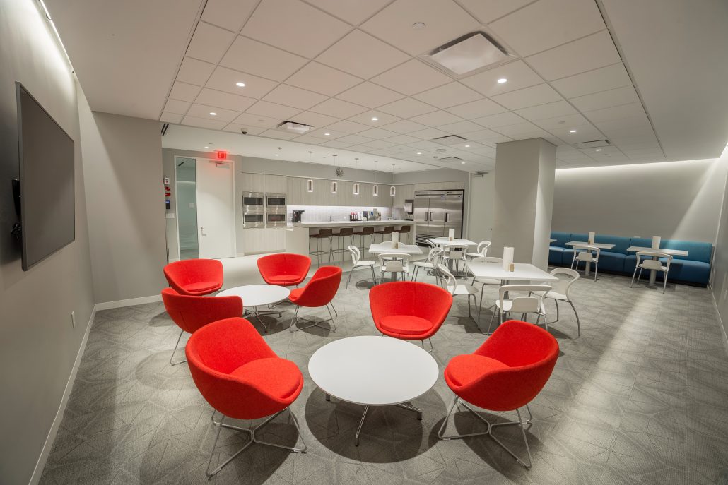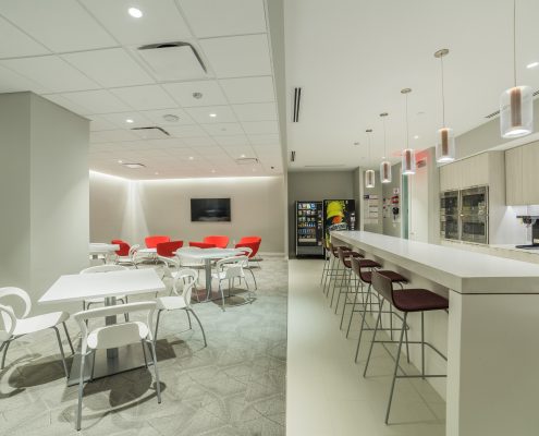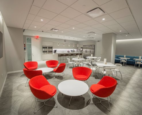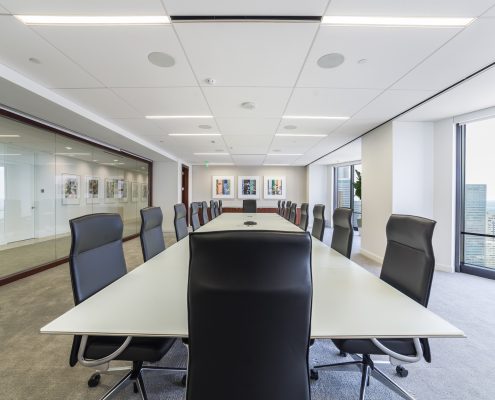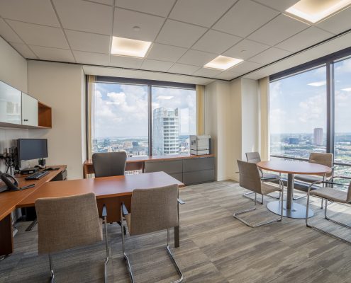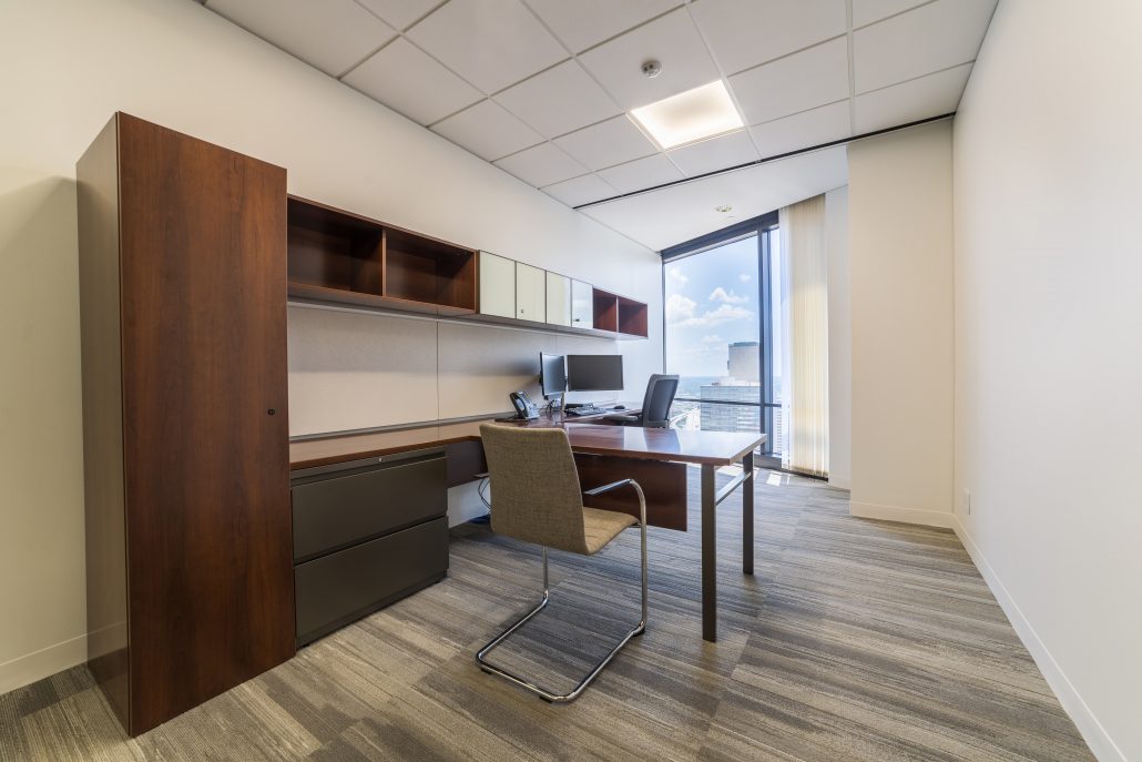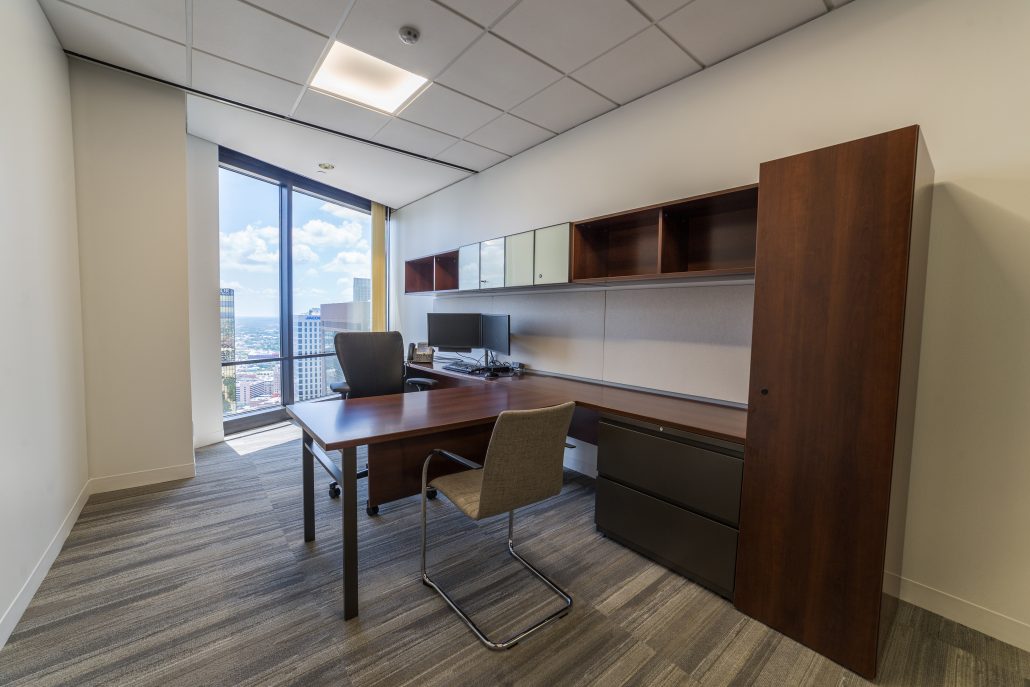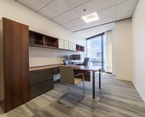 BOS partnered with Akerman LLP to expand their downtown Dallas office into an entire new floor in the Trammel Crow Center. The new space reflects a contemporary, professional aesthetic with 43 paralegal and attorney offices, 12 admin stations, 5 formal conference rooms, a cafe and a collaborative space with Haworth’s Workware technology.
