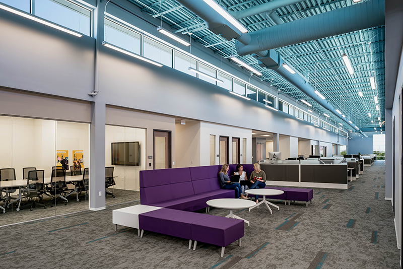 One of the strategies for supporting employees was to focus on the needs of each department, and personas were created that informed all the design decisions. The strategy included using one standard workstation size from a kit of parts, but then customizing each department’s layout and features to fit those team’s workstyle. In addition, the project team embraced the idea of managing this change by involving the entire office in the process. Their marketing team created videos with executives, and scheduled tours during construction to share the progress with everyone.