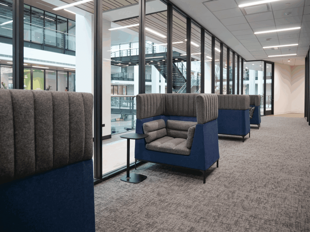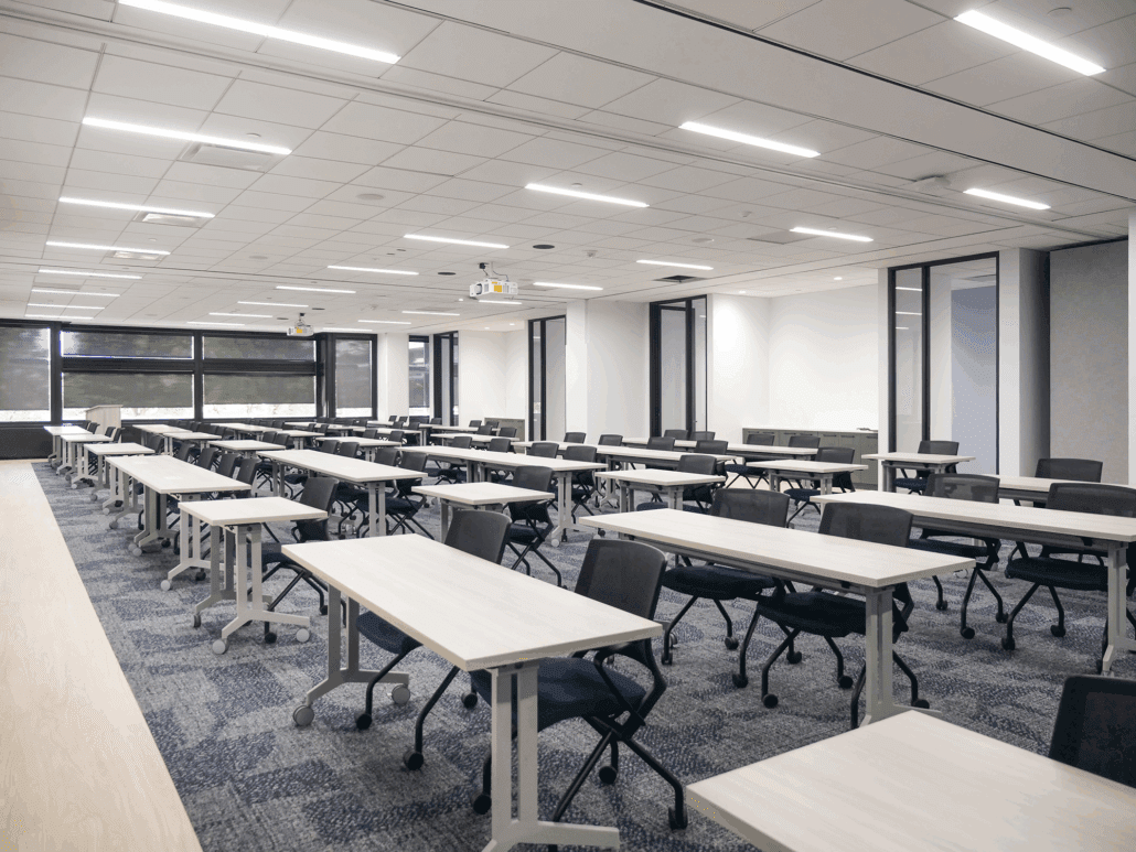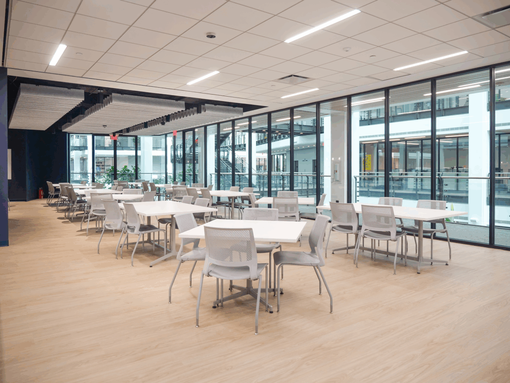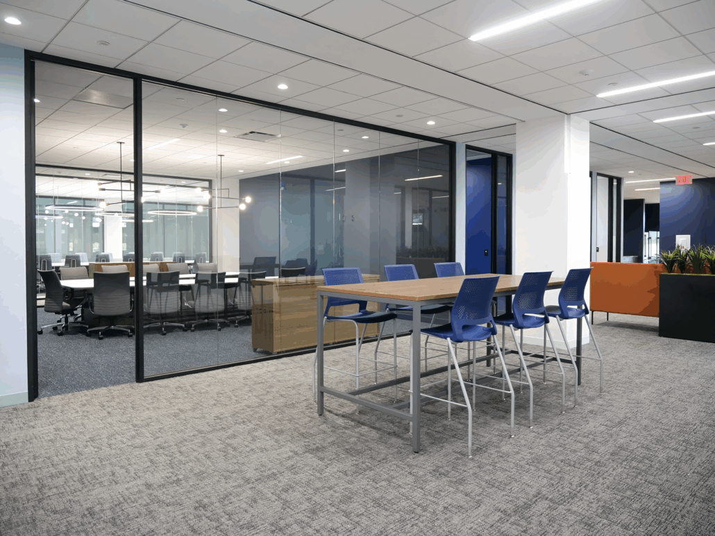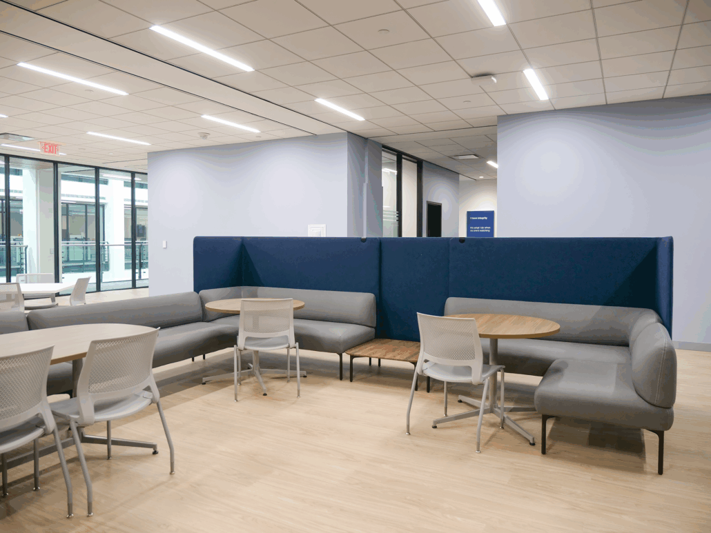Convergint’s new National HQ combines style, technology, and collaboration to inspire employees and reflect their brand. Our team enhanced shared and collaboration spaces to showcase their furniture standards, reinforce their brand, and motivate teams to return to the office. The space highlights Convergint’s industry prowess, advanced technology, and includes an adaptable professional training center to drive initiatives. Key features include a welcoming reception with four seating vignettes, a formal boardroom, think tank, dynamic collaboration areas, conference spaces, and a modern breakroom, all designed to foster connection, creativity, and innovation.