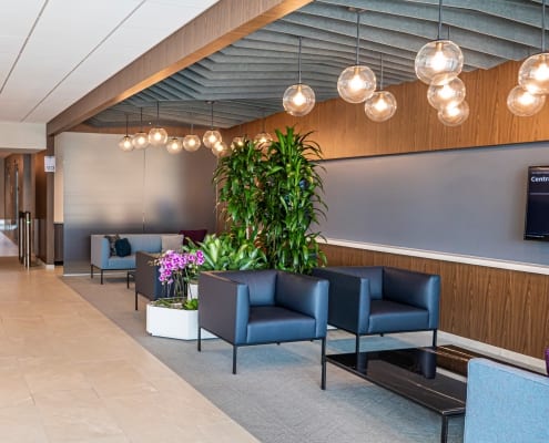 Enterprise Fleet Management loved the look of glass front offices and wanted them for their new office location. They also wanted to build adaptability into areas of their floor plan so that offices could be converted into conference rooms in the future and returned back to offices should that best support their business function. The answer was modular walls. Including both glass fronts and solid dividing modular walls resulted in a price per lineal foot that competed with conventional construction, easily swaying the decision to modular walls.