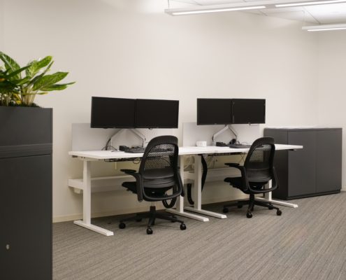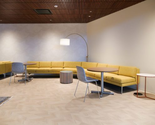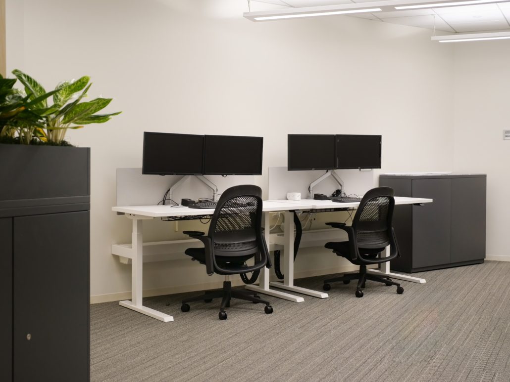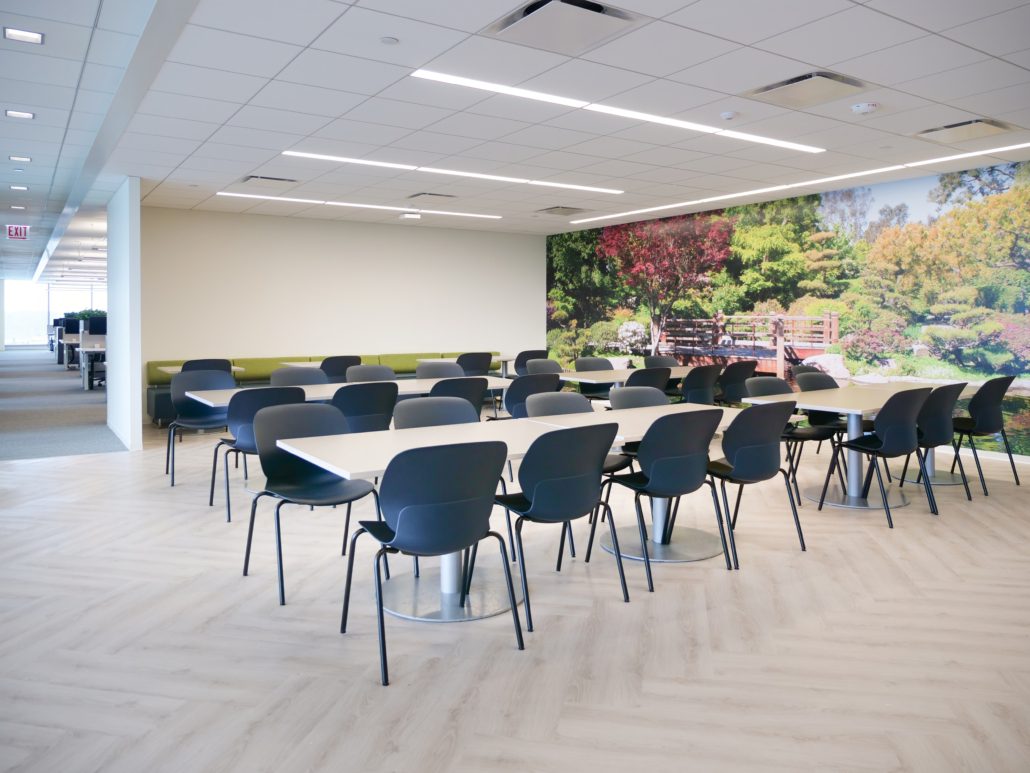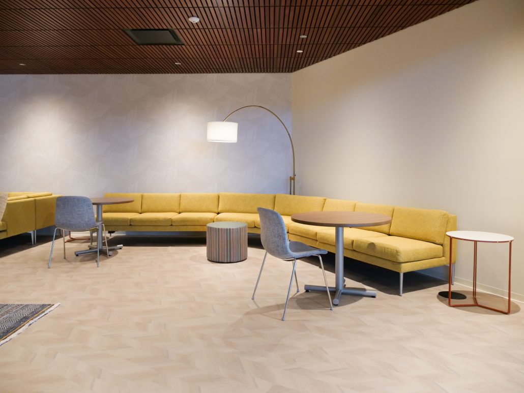 We partnered with a featured business firm to transform their second floor, partial mezzanine, and cafe into a modern, functional workspace. The renovation included sleek new Haworth Upside Benching Stations, private Focus Rooms with Haworth Jive tables and Breck task chairs and inviting lounge areas featuring Arcadia and Stylex furniture. We also repurposed existing conference room tables, files, and breakroom furniture, seamlessly blending the old with the new. The result is a dynamic, efficient environment that fosters collaboration and supports productivity.