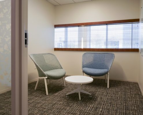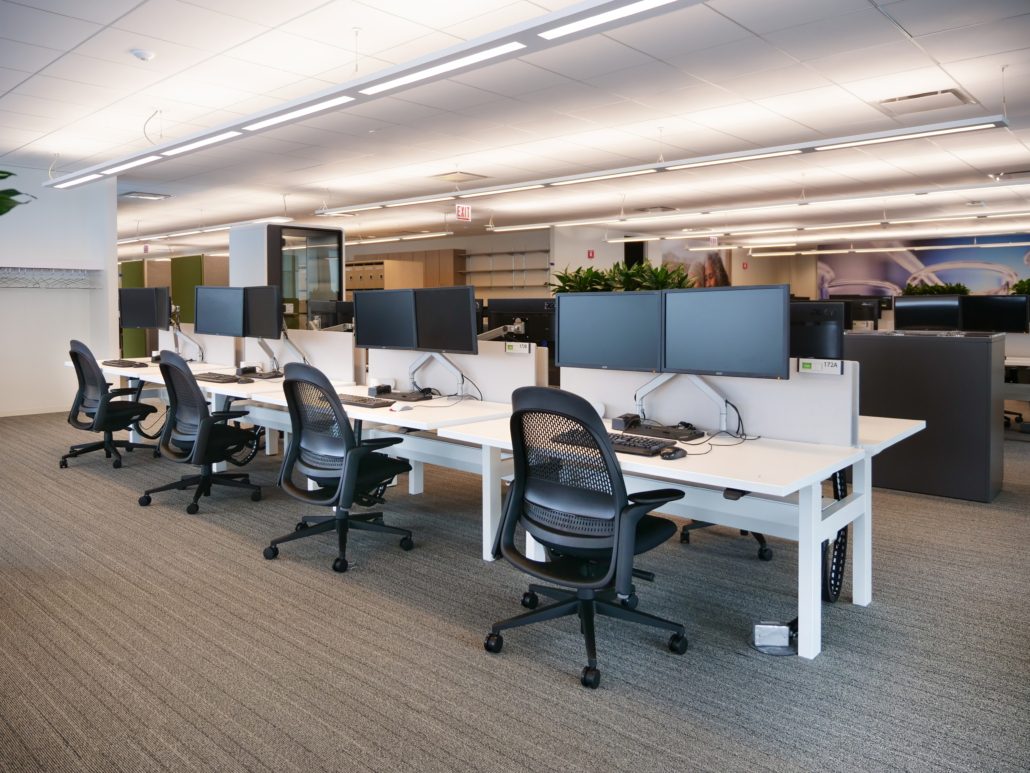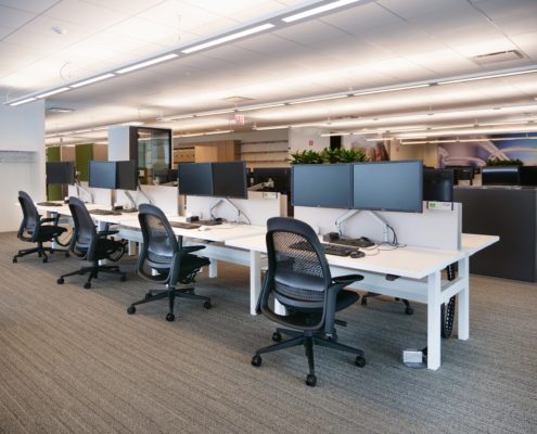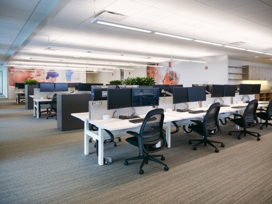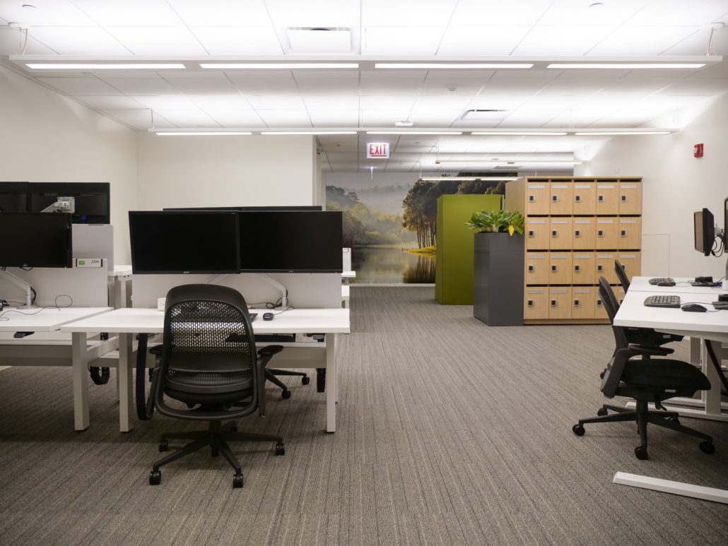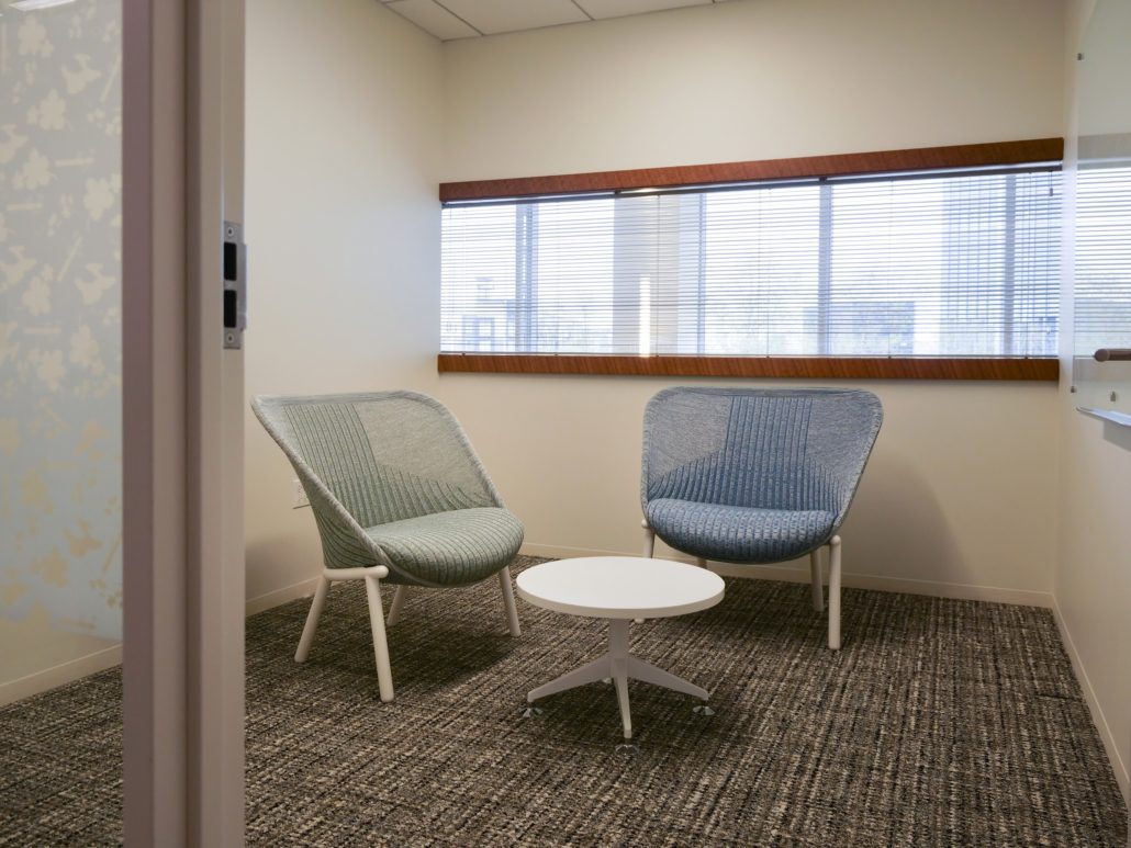 We partnered with a featured business firm to transform their second floor, partial mezzanine, and cafe into a modern, functional workspace. The renovation included sleek new Haworth Upside Benching Stations, private Focus Rooms with Haworth Jive tables and Breck task chairs and inviting lounge areas featuring Arcadia and Stylex furniture. We also repurposed existing conference room tables, files, and breakroom furniture, seamlessly blending the old with the new. The result is a dynamic, efficient environment that fosters collaboration and supports productivity.