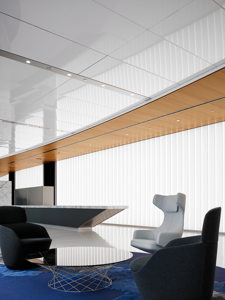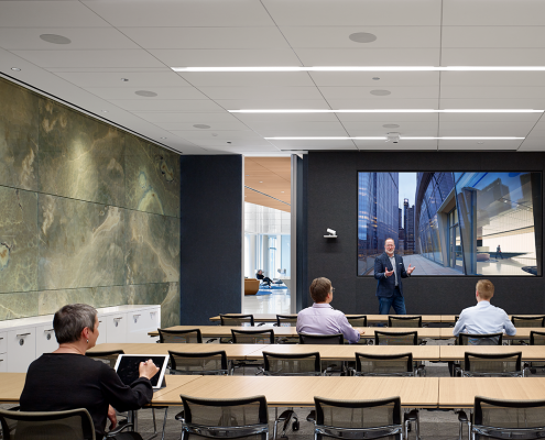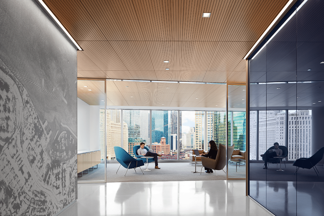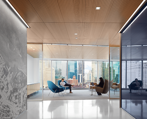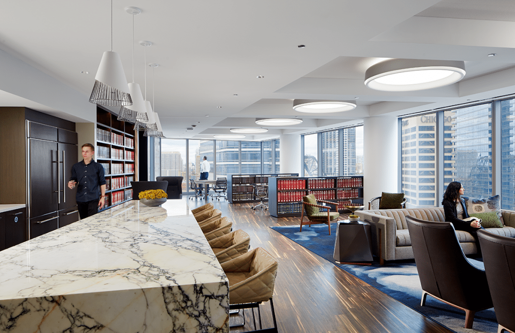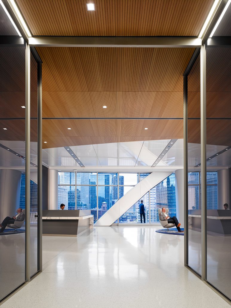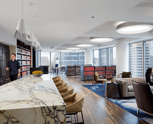 BOS partnered with a law firm to create a workspace encompassing ancillary furniture and partner offices over 7 floors in Chicago’s premier new construction high-rise on the Chicago River. The scope includes lounges on each floor and full amenity floor for reception, conference, training and dining with a variety of imported European designer furniture. Photo Credit: Steve Hall © Hall+Merrick
