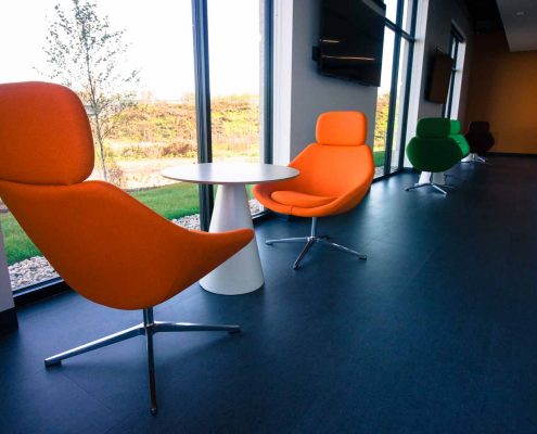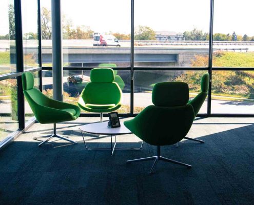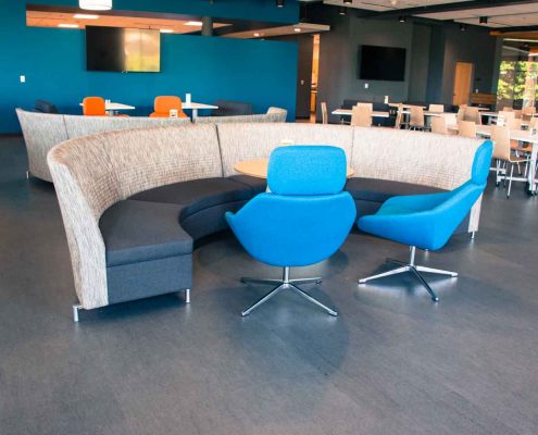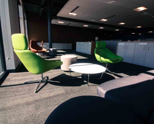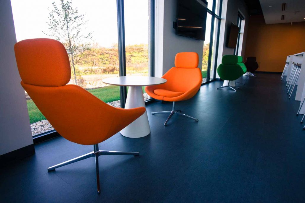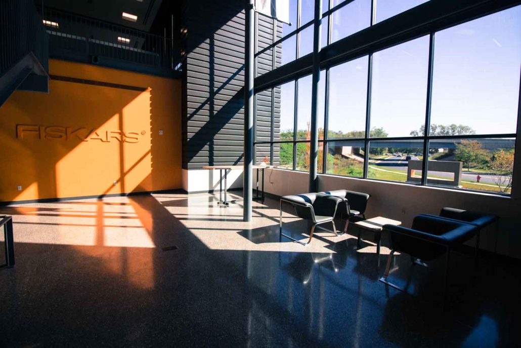 Our team was hired to provide design and space planning services prior to furniture planning. We worked closely with Fiskar’s Design Team and outside partners to help create a space that was reflective of their great heritage and also the innovative and iconic brand. BOS/AOI then provided all furniture within the space carefully selecting pieces that would be as classic as the orange handles on their scissors. BOS/AOI installed 268 workstations, 67 Private Offices as well as Furniture and Soft Seating for the Break Rooms, Training Rooms, Conference Room furniture, Labs and Mail Room. The result is a striking, timeless and functional workspace that Fiskars is thrilled to call home.