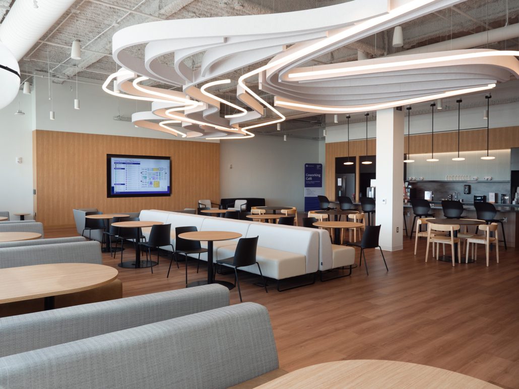 Divided into three unique neighborhoods, the Learning Lab allows over 750 participants from the Milwaukee area to experience different workstation styles and provide valuable feedback. This feedback will directly inform future workplace strategies for the Waukesha Campus and other global locations. Key elements of the space include a Work Cafe, concierge space, and various conference rooms designed to enhance productivity and foster a collaborative environment.