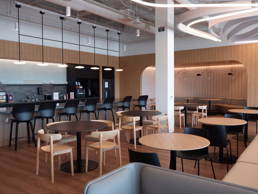 GE HealthCare’s 25,000 sq. ft. Learning Lab is designed as a dynamic space to pilot the latest workplace technologies and strategies. The lab features upgraded conference room setups, diverse workstations, concierge services, and flexible huddle spaces to promote collaboration and innovation across teams.