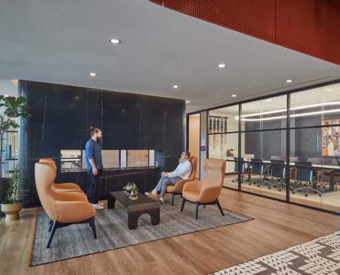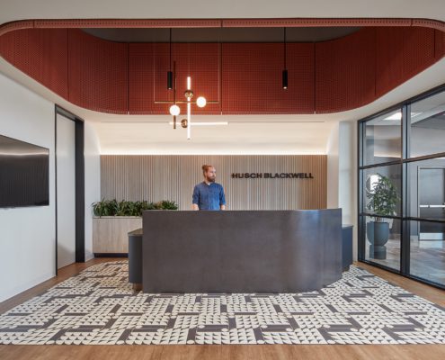 BOS transformed Husch Blackwell’s Springfield office into a modern and collaborative space spanning 17,800 square feet. The design fosters diverse workstyles with key features like height-adjustable L-shaped desks in private offices, U-shaped workstations for teamwork, and a variety of conference rooms equipped for seamless client interaction. Inviting social areas with lounge seating, café tables, and greenery promote breaks and company culture. By incorporating these elements and overcoming challenges like delayed construction, BOS successfully helped Husch Blackwell create a functional and stylish space, meeting their needs, timeline and budget.