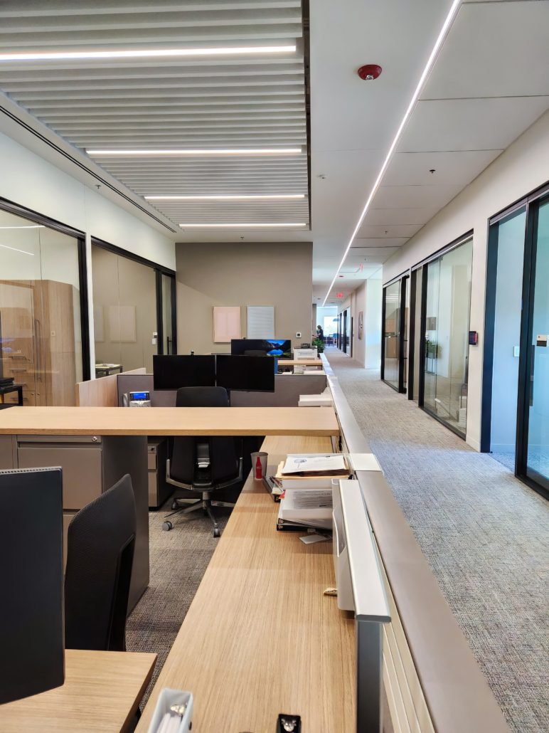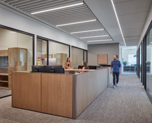 Despite double-paned glass installation requiring a dust-free environment and delays in scheduling, BOS successfully overcame these challenges. Swift solutions, enhanced team coordination, and clear communication ensured the Springfield office furniture installation stayed on track and met Husch Blackwell’s expectations.