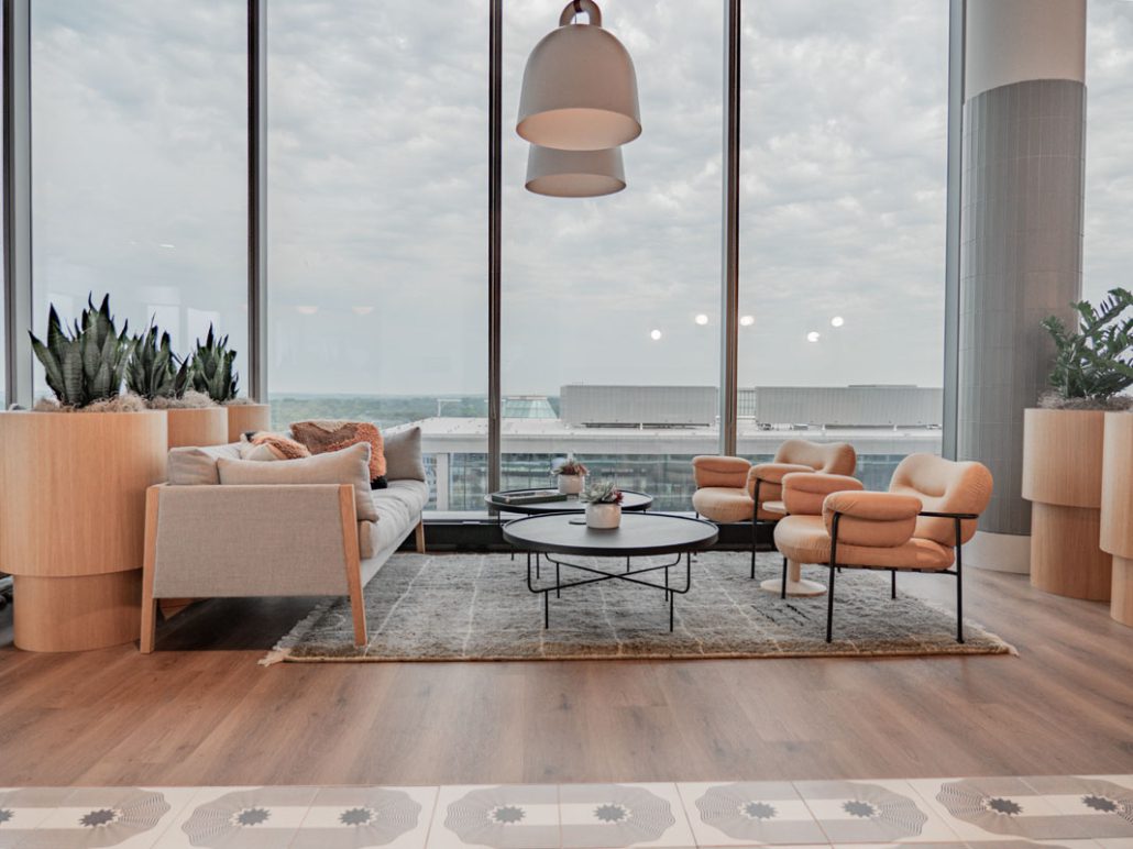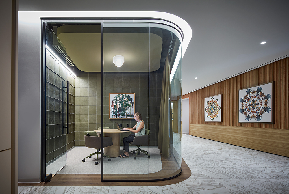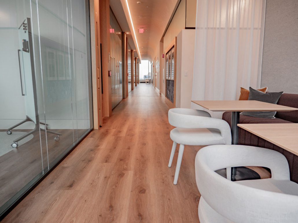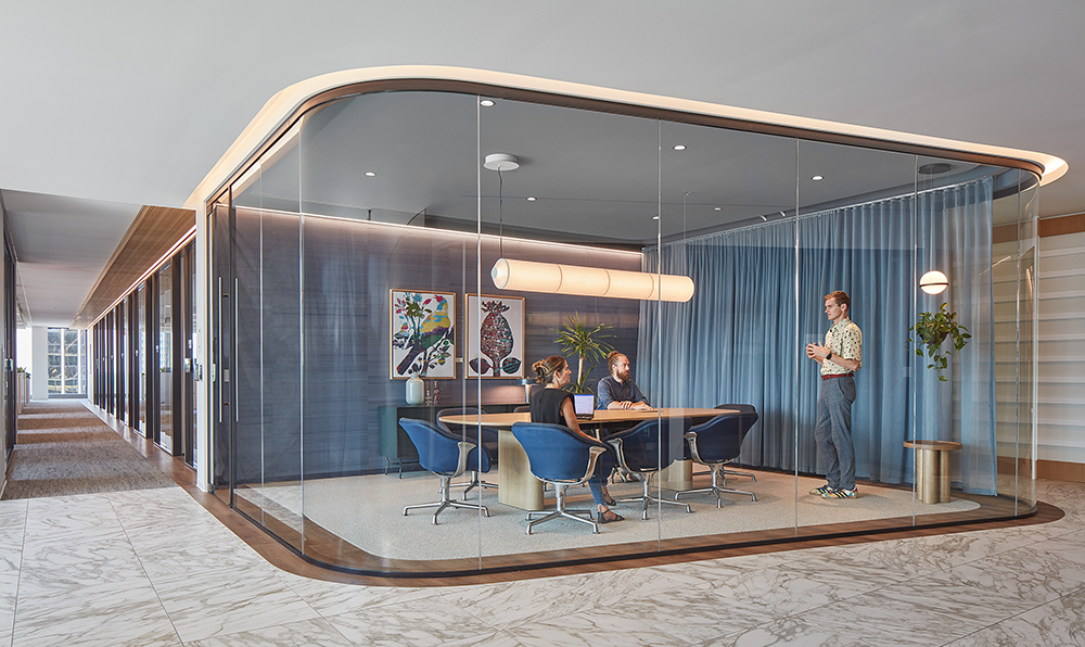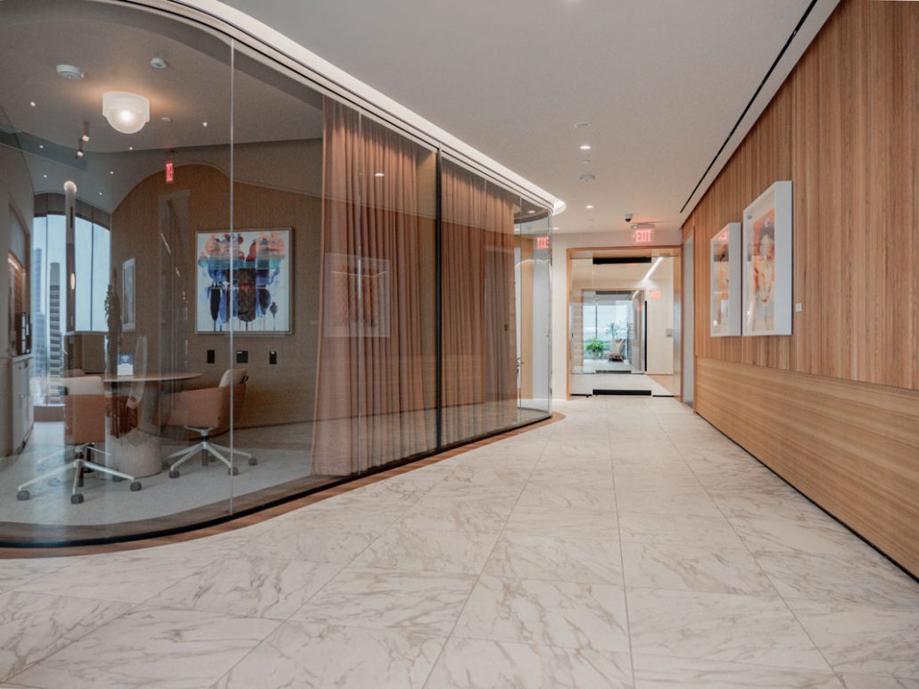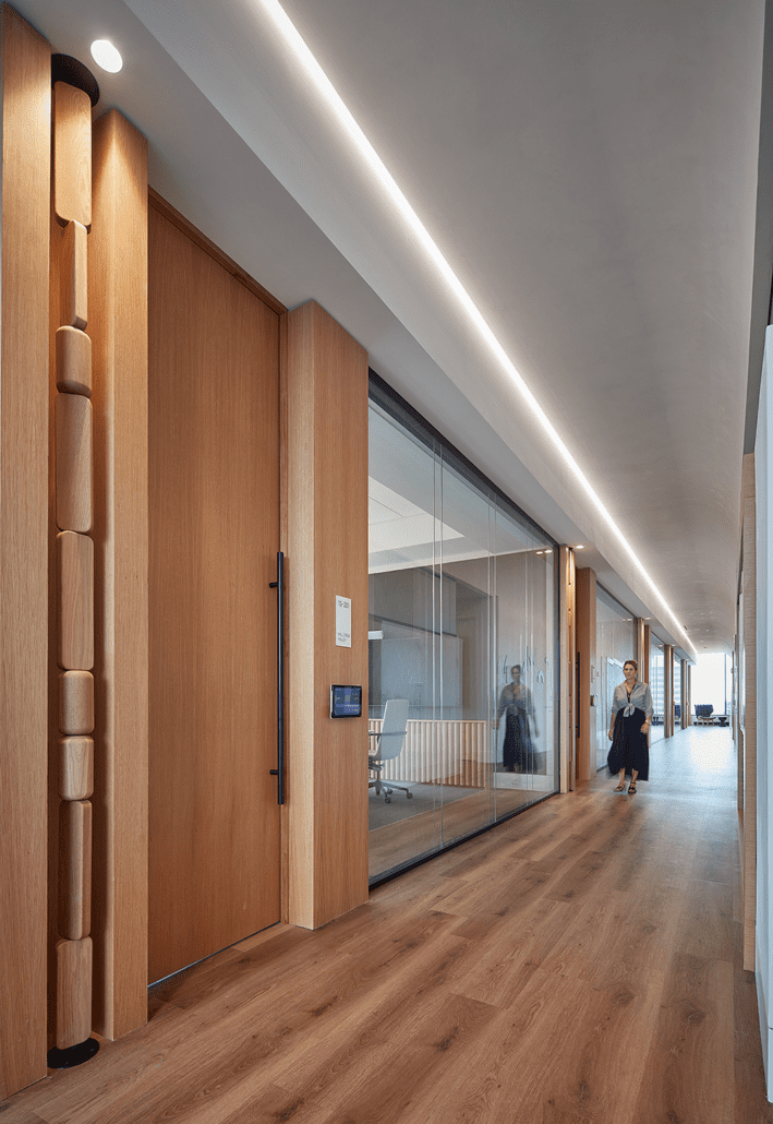 With these floors, BOS used a mixture of Haworth masters private offices and workstations, Haworth Enclose Glass, Haworth Trivati Glass, Alur curved glass walls.