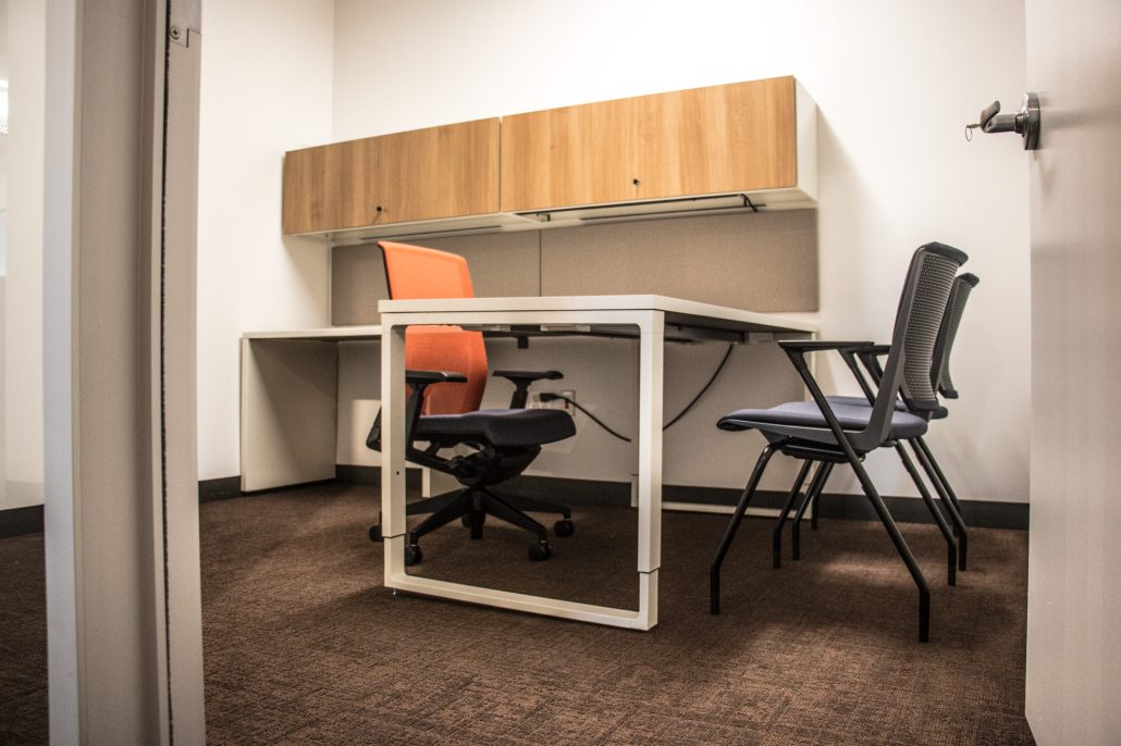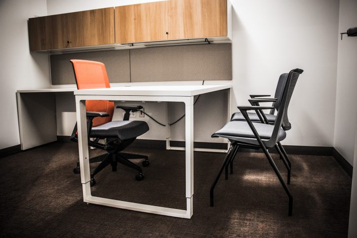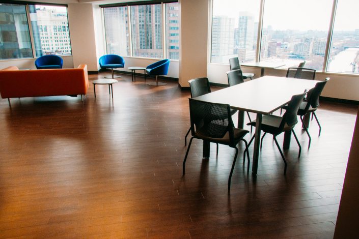 Panoramic views, angular walls and large columns designed by acclaimed Chicago architect Harry Weese serve as the back drop to staff, training workshops and corporate meetings. BOS worked closely with Ratio and U of I Capital Programs to incorporate design elements and color palette into the mix of work, collaborative, lounge and meeting spaces to bring the Urbana–Champaign spirit to Chicago. Color renderings and specifications were created utilizing Canvas, Haworth’s powerful visualization tool, and allowed for quick and accurate understanding of the final product.