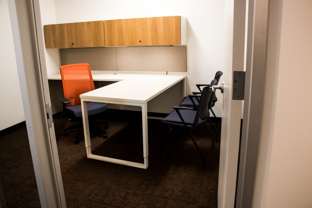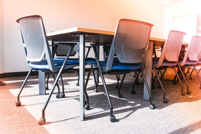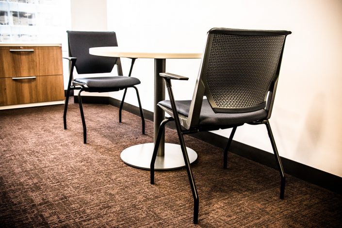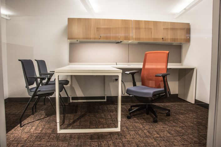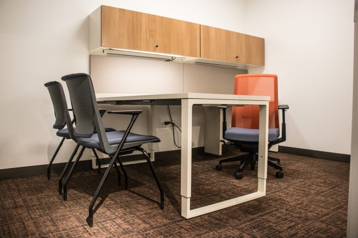 Panoramic views, angular walls and large columns designed by acclaimed Chicago architect Harry Weese serve as the back drop to staff, training workshops and corporate meetings. BOS worked closely with Ratio and U of I Capital Programs to incorporate design elements and color palette into the mix of work, collaborative, lounge and meeting spaces to bring the Urbana–Champaign spirit to Chicago. Color renderings and specifications were created utilizing Canvas, Haworth’s powerful visualization tool, and allowed for quick and accurate understanding of the final product.