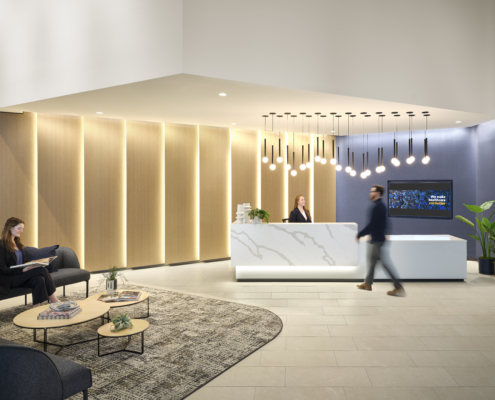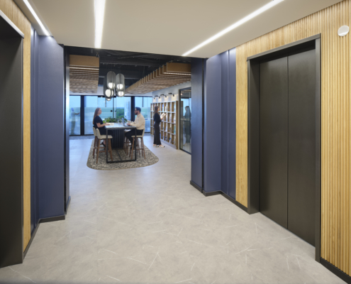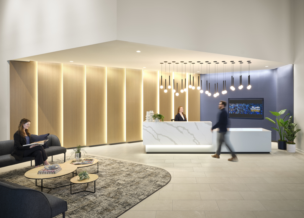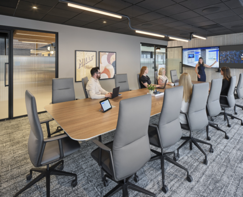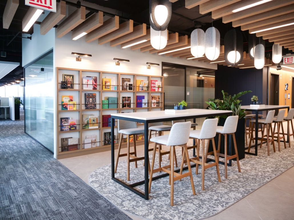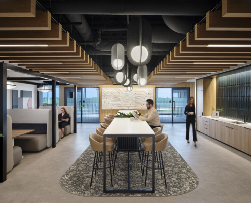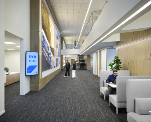 The largest provider of medical-surgical products and supply chain solutions transformed seven floors with a blend of new and repurposed furniture to create a space that is both functional and inspiring. Over 750 workstations, 51 offices, and various ancillary items from a previous location were seamlessly integrated, all while staying true to the company’s high standards. The aim was to craft an environment that encourages collaboration and flexibility, where innovation thrives and efficiency takes center stage. The final space strikes a balance between practical design and a forward-thinking atmosphere.