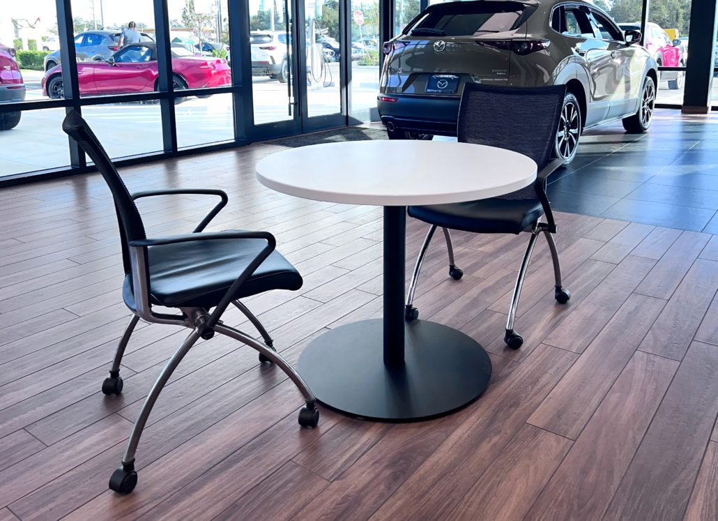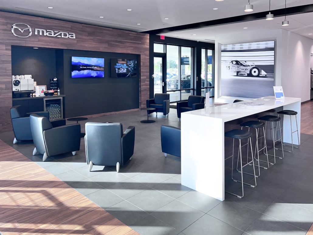 BOS was excited to partner with Mazda of Port Charlotte to provide a new dealer furniture package, fully aligned with the Mazda North America brand design intent documents. The goal was to create a complete, compliant furniture setup that perfectly reflected Mazda’s modern and sleek aesthetic. A standout feature of the project was the showroom, designed to enhance the customer experience and showcase the brand’s innovative spirit. With careful attention to detail, we delivered a space that seamlessly blended functionality and style, staying true to Mazda’s vision.