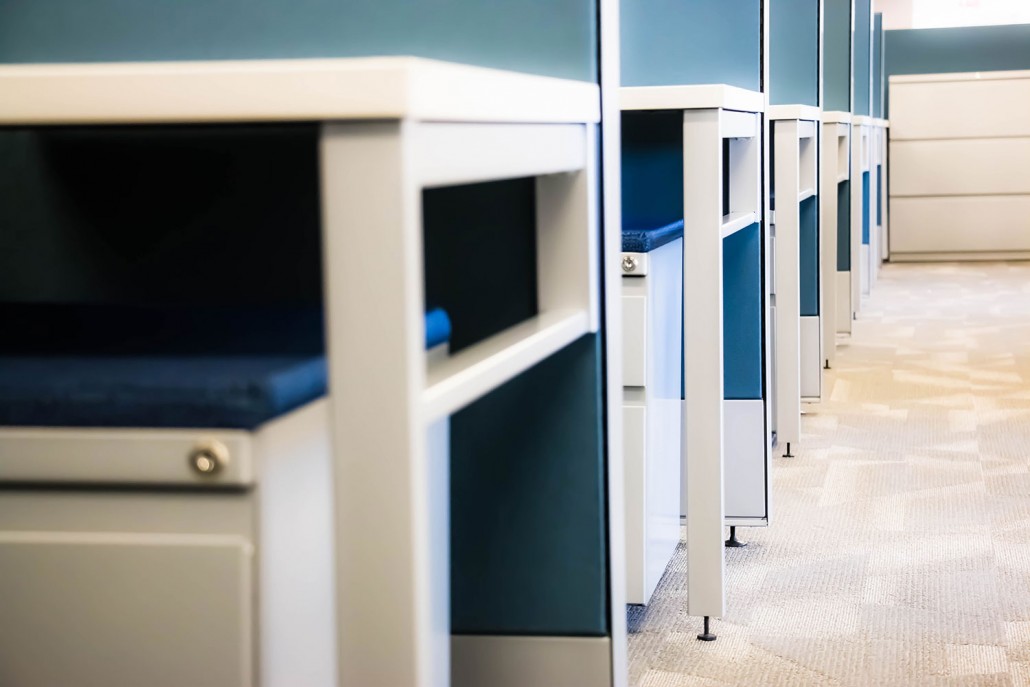 BOS partnered with MVP to build out a new HQ in Deerfield, IL. The top floor, 18,000 Square Foot facility featured 57 Haworth Compose workstations, 23 private offices, 4 executive offices, a pantry, lounge, and Hub collaboration space.