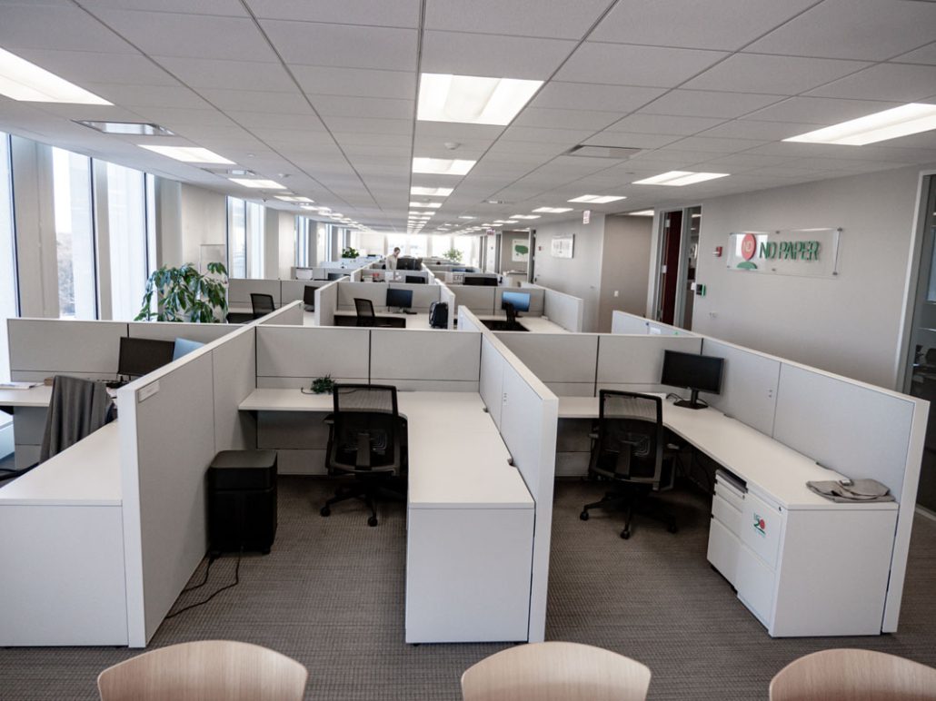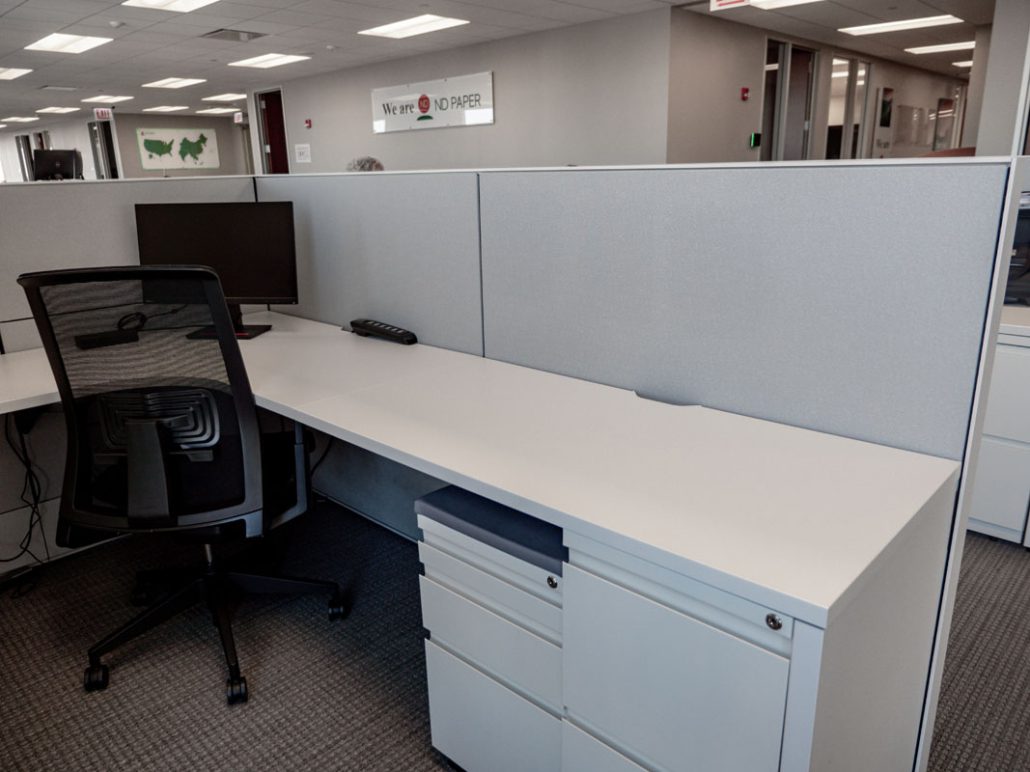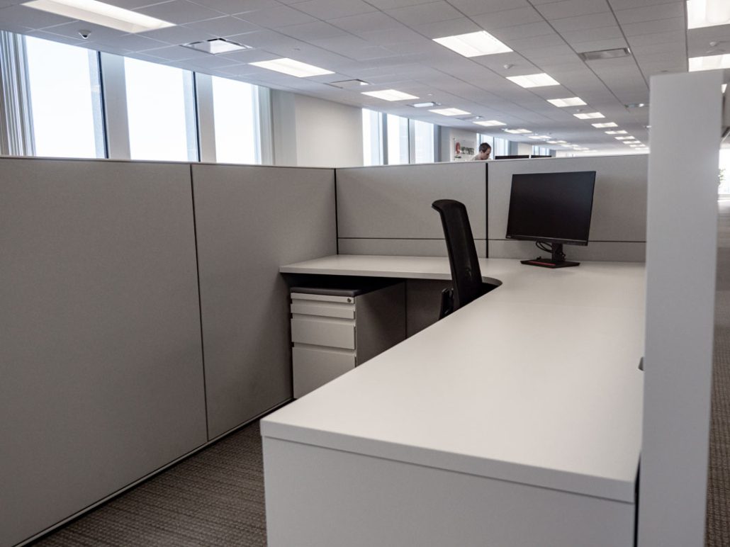 BOS completely changed the look and feel of the office by reducing panel heights and updating finishes. A great story about reusing vs. decommissioning or disposing which was the customer’s first plan.