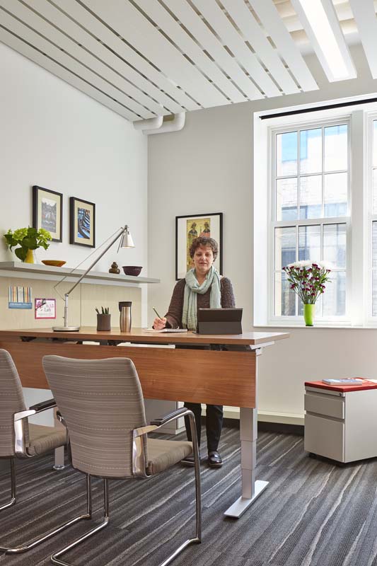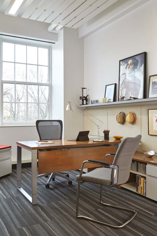 Buildings, and the furniture and finishes in them, can have a profound effect on the health and well-being of the building occupants. Interior Designers at FGM worked with BOS and Haworth (furniture dealer and manufacturer, respectively) to select furniture and finishes that would contribute positively to the overall health of the faculty, staff, and students that utilize Kresge.