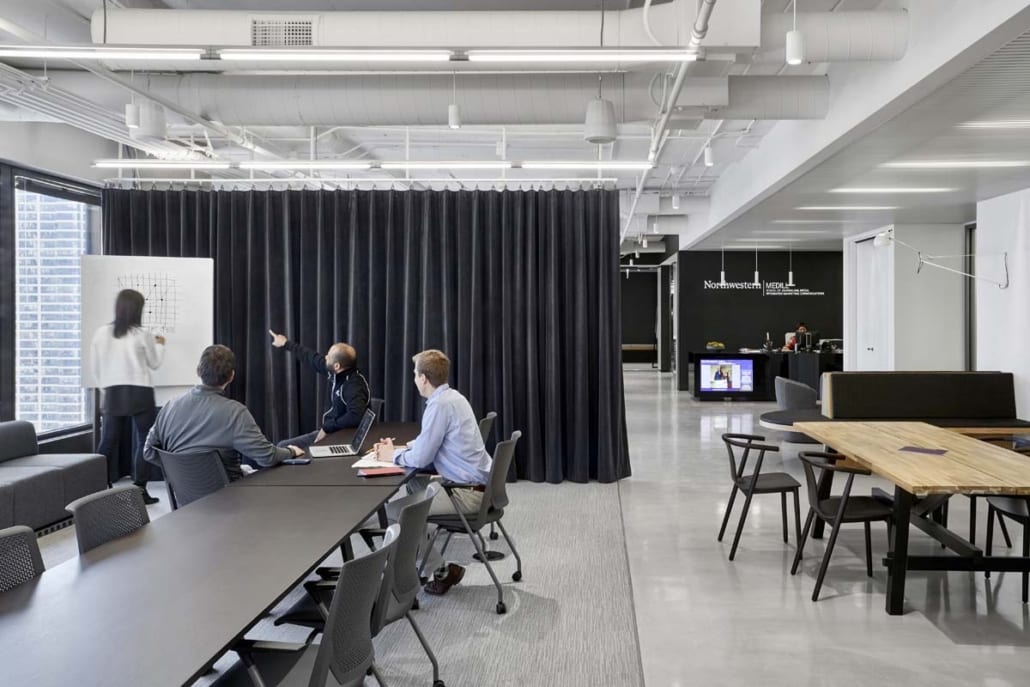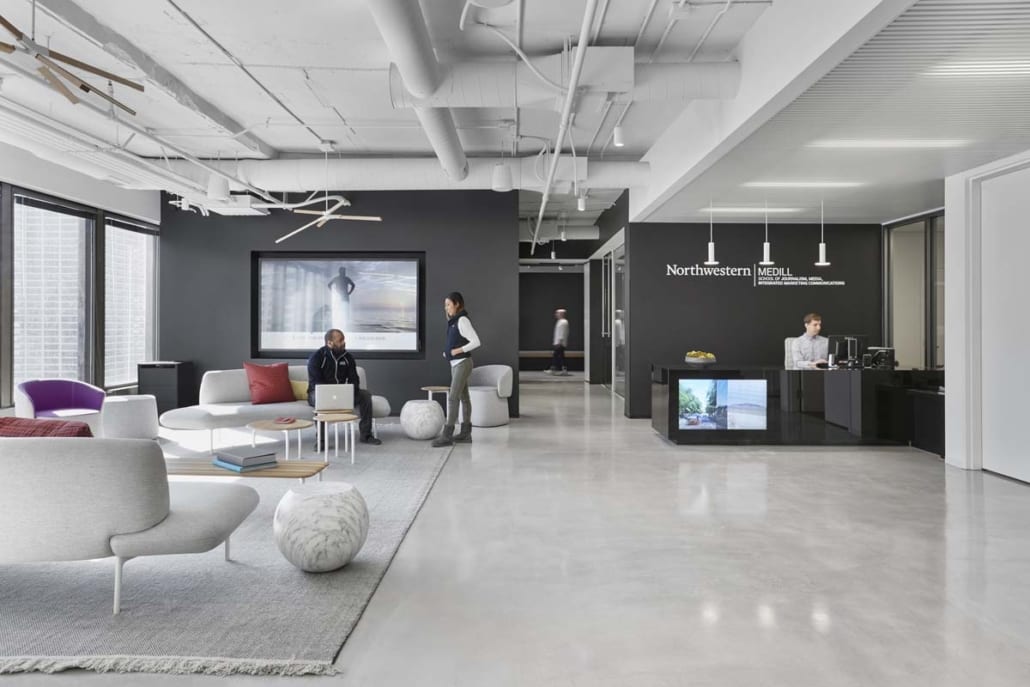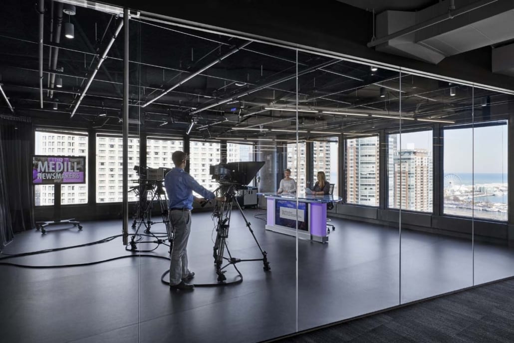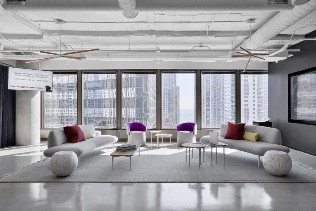With sweeping views of Lake Michigan, Navy Pier and the Chicago River, this new modern workspace was designed to be both inspiring and reflective of the changes happening in today’s fast-paced, social and technology-driven climate, preparing students to take their careers in media into the future.