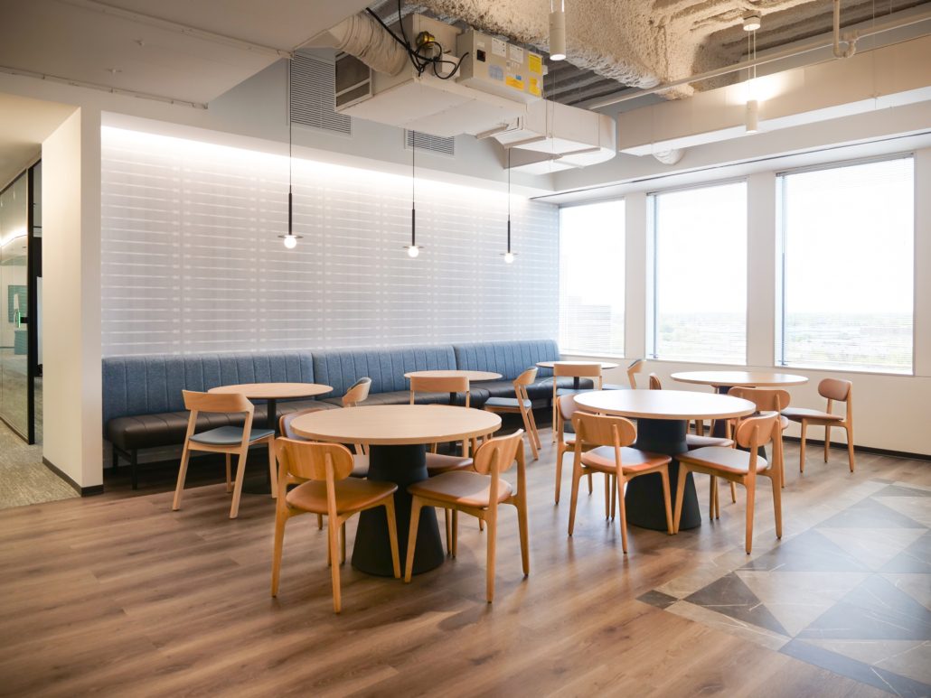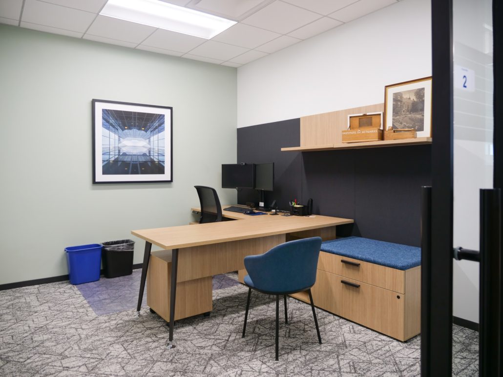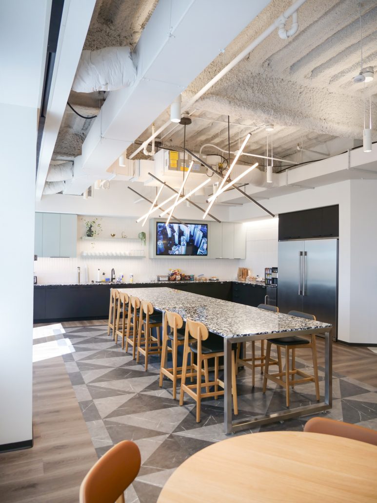 The Society of Actuaries (SOA), a global leader in actuarial professionalism, recently moved to a new office designed to inspire collaboration and engagement. The space reflects a “clean modern” aesthetic, featuring black metal accents, open ceilings, and expansive perimeters to bring in natural daylight. It includes private and open offices, conference rooms, a pantry, and collaborative spaces, all thoughtfully designed to support SOA’s employees. Conveniently located for seamless access to both the suburbs and Chicago, the office cultivates a vibrant company culture, keeping teams connected, inspired, and energized in their work.