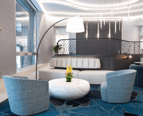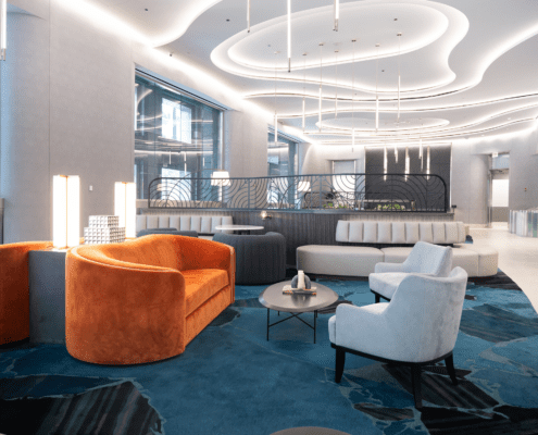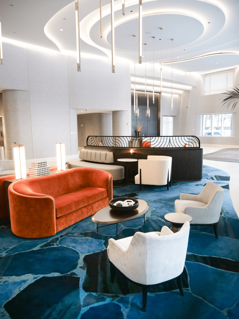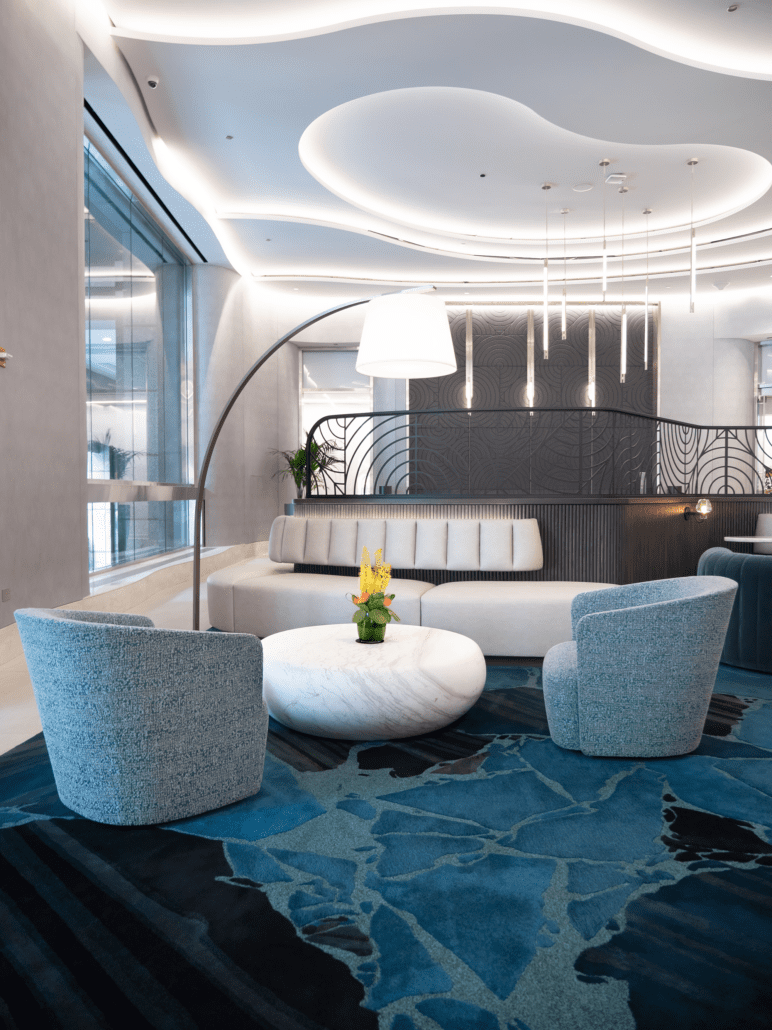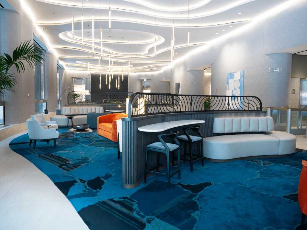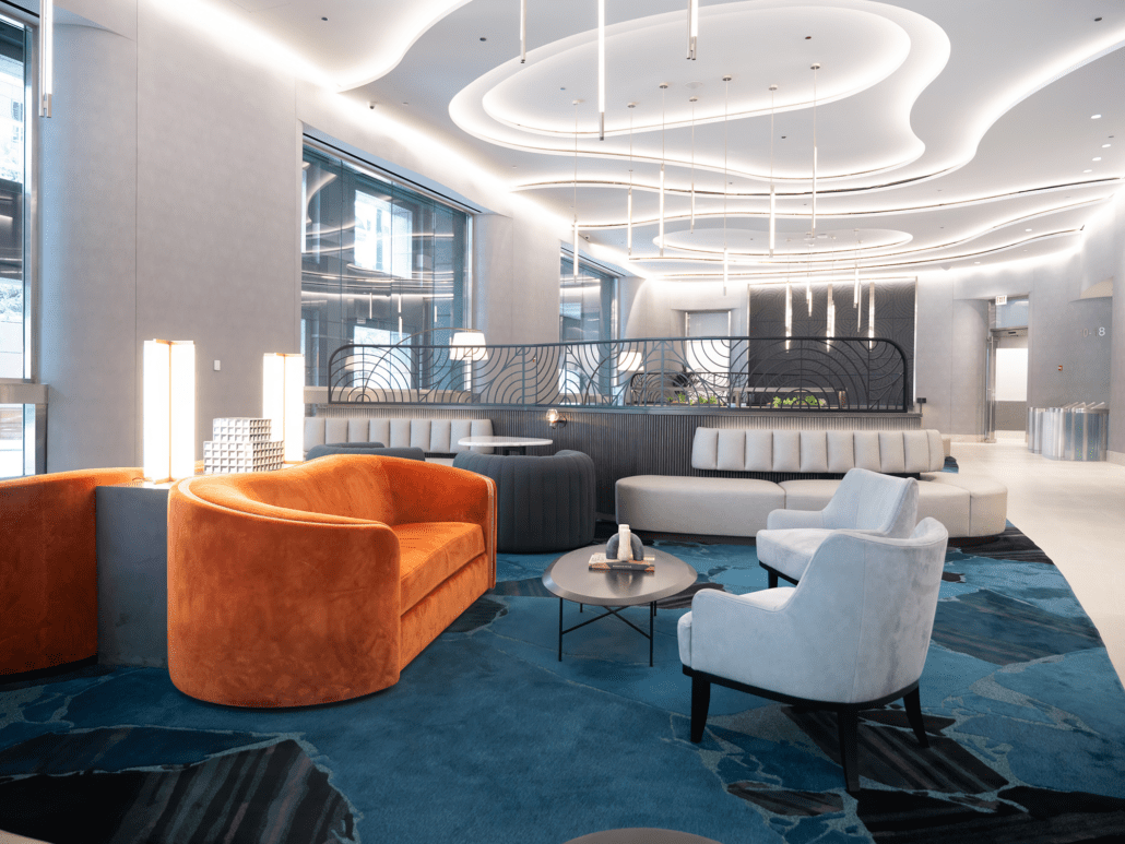 A standout element is the striking 1,000-pound marble occasional table from Italy, which lend a sense of luxury and uniqueness. With new architectural details, elegant wall coverings, and custom carpeting, the lobby now offers a sophisticated yet welcoming environment that leaves a lasting impression on all who enter.