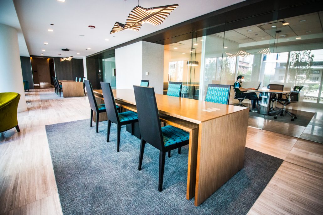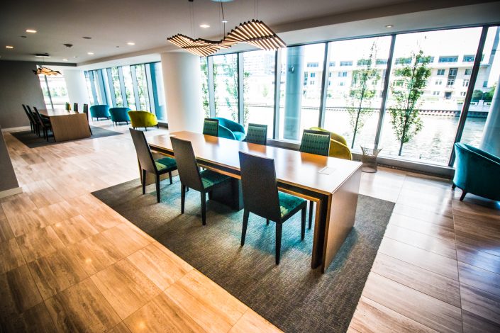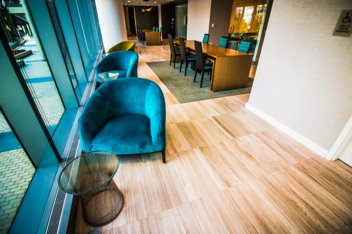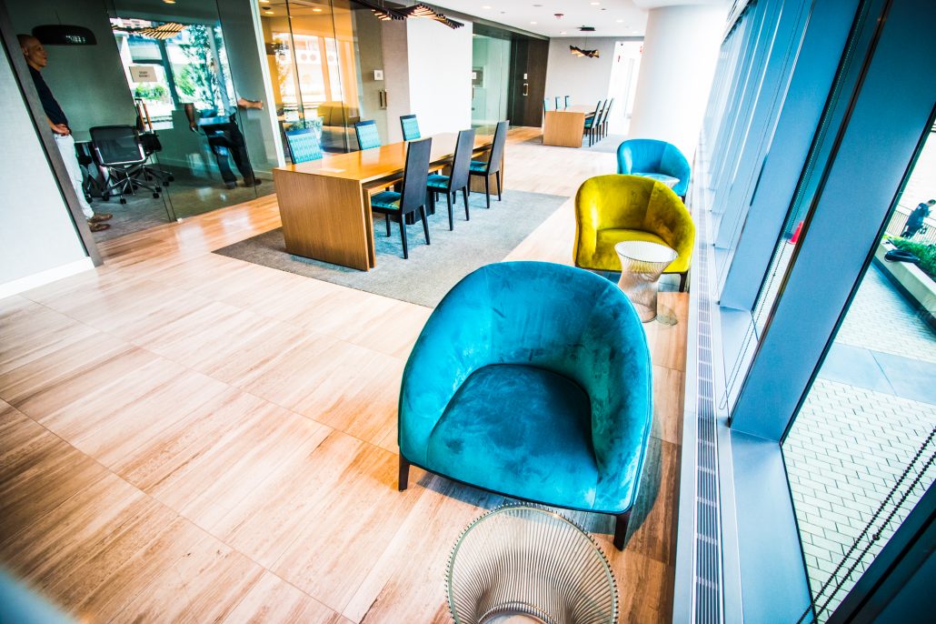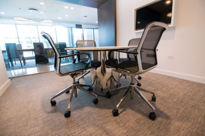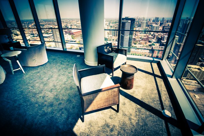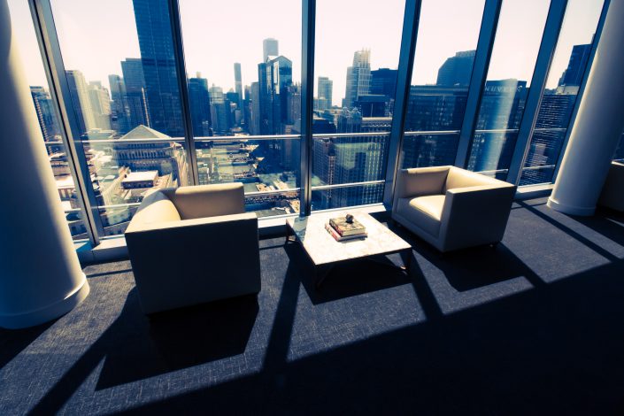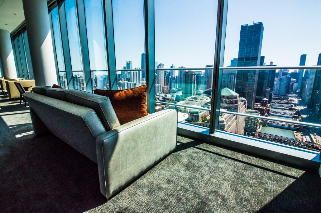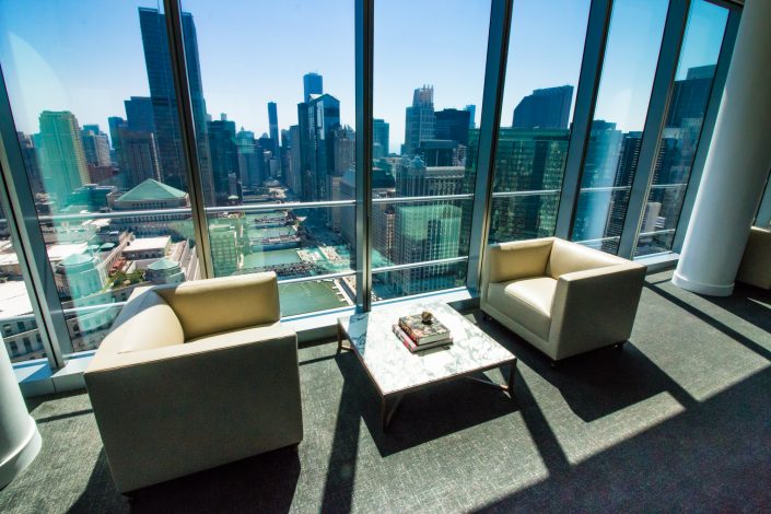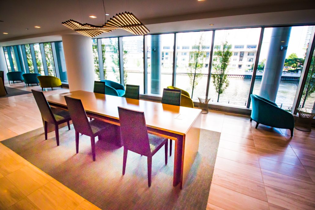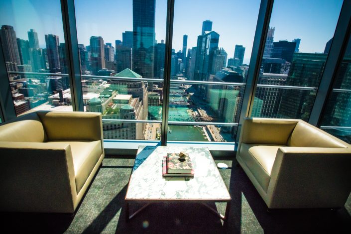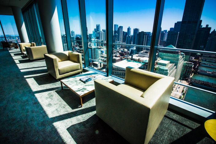 Elegantly responding to the confluence of the Chicago River, Wolf Point West’s design maximizes views in every direction rising 46 stories high. Residents will enjoy spectacular views from floor-to-ceiling windows, as well as inset balconies on select units. These brand new, stunning River North apartments feature refined architectural detailing with duotone, soft-close cabinetry, quartz countertops, undermount sinks and wood grained flooring. BOS furnished and installed common areas, business center, offices, and model units.