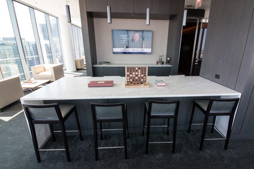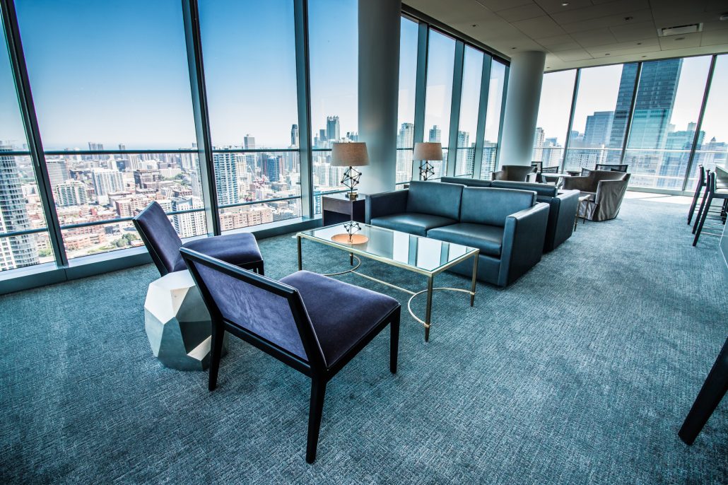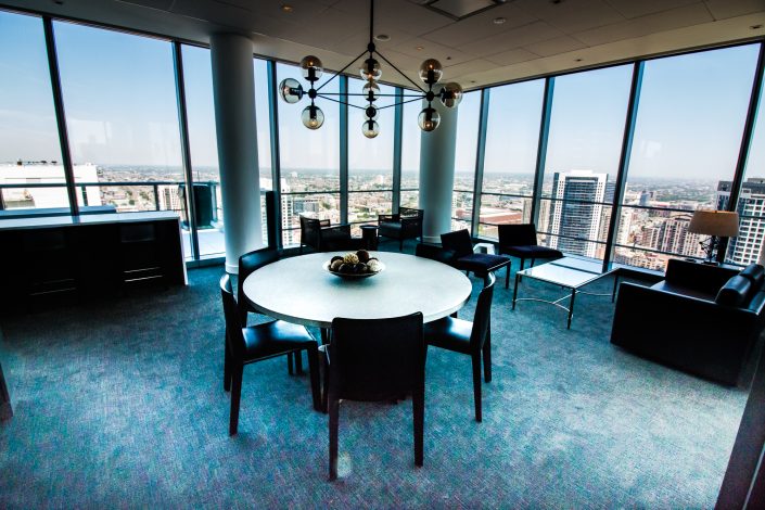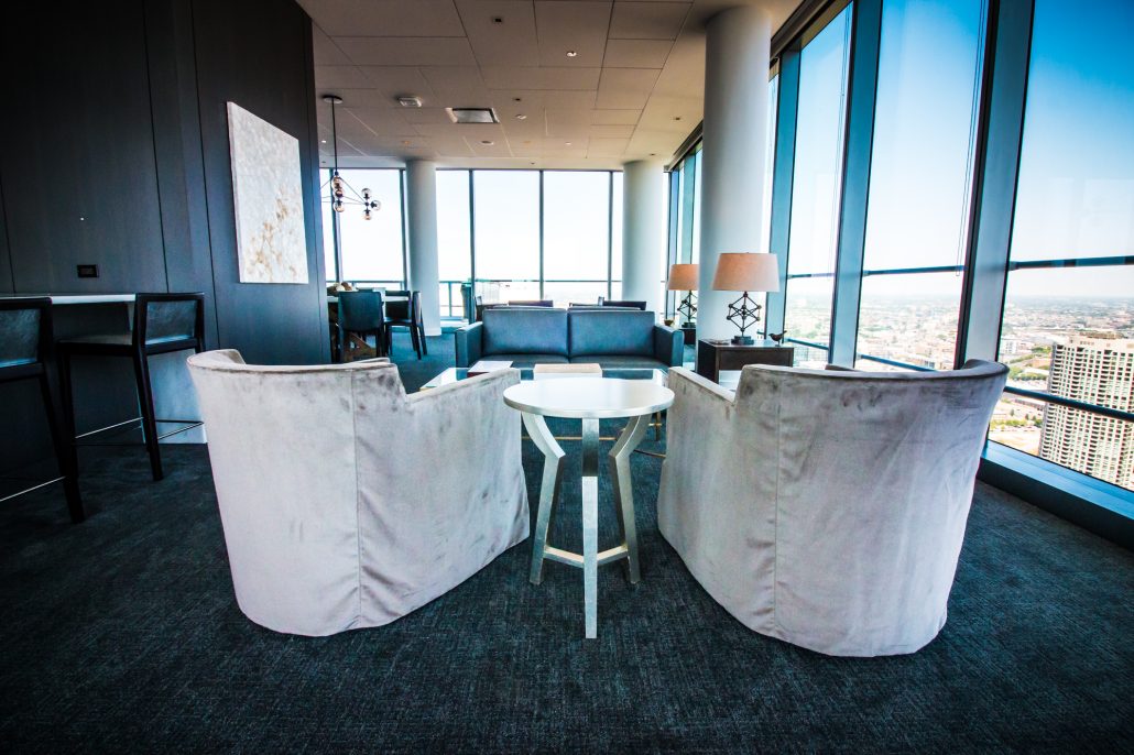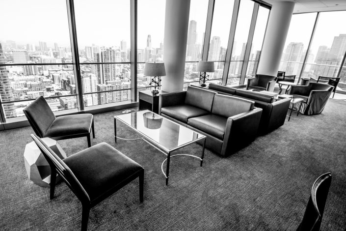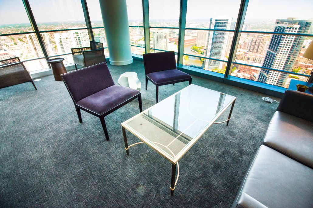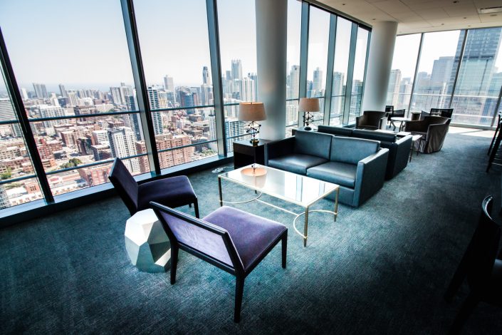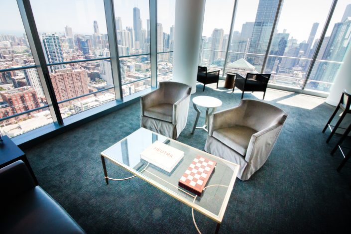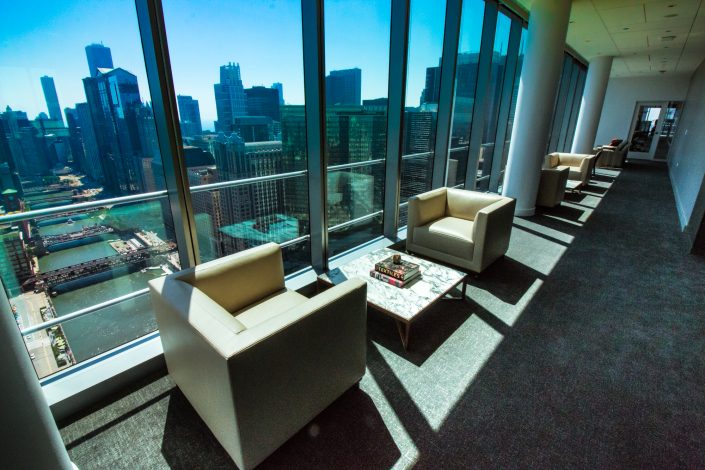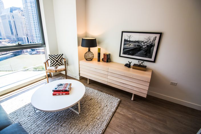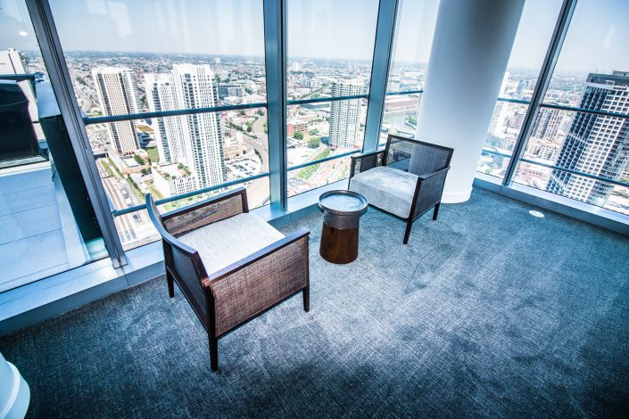 Elegantly responding to the confluence of the Chicago River, Wolf Point West’s design maximizes views in every direction rising 46 stories high. Residents will enjoy spectacular views from floor-to-ceiling windows, as well as inset balconies on select units. These brand new, stunning River North apartments feature refined architectural detailing with duotone, soft-close cabinetry, quartz countertops, undermount sinks and wood grained flooring. BOS furnished and installed common areas, business center, offices, and model units.