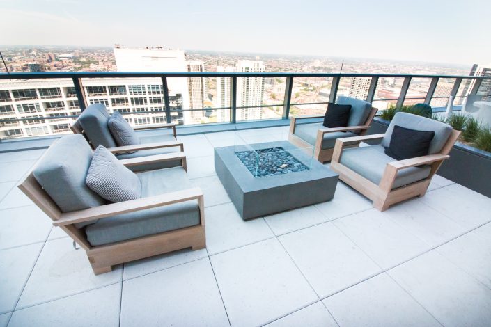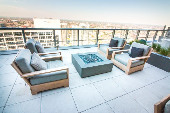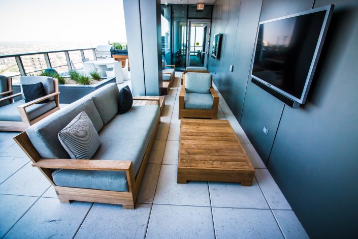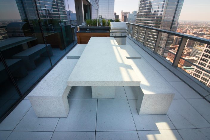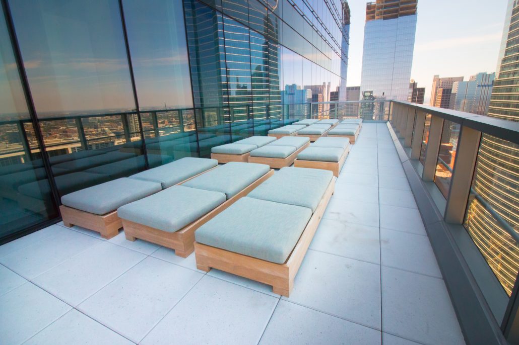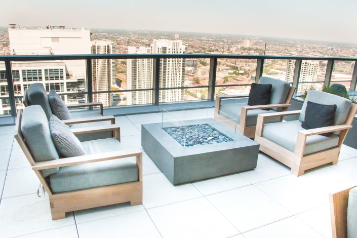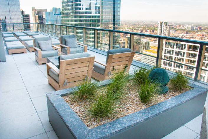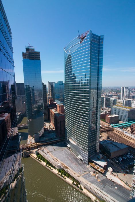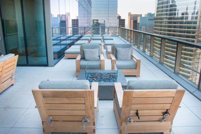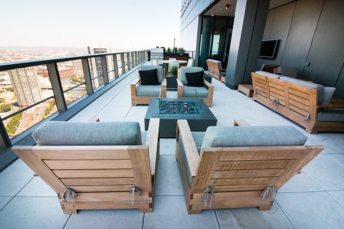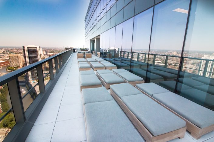 Elegantly responding to the confluence of the Chicago River, Wolf Point West’s design maximizes views in every direction rising 46 stories high. Residents will enjoy spectacular views from floor-to-ceiling windows, as well as inset balconies on select units. These brand new, stunning River North apartments feature refined architectural detailing with duotone, soft-close cabinetry, quartz countertops, undermount sinks and wood grained flooring. BOS furnished and installed common areas, business center, offices, and model units.