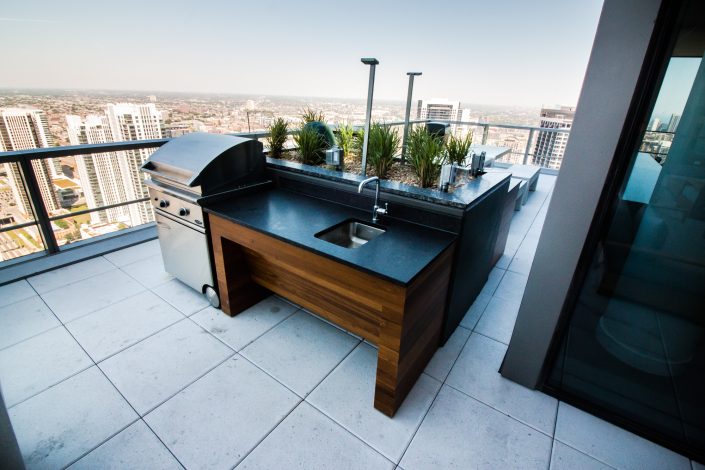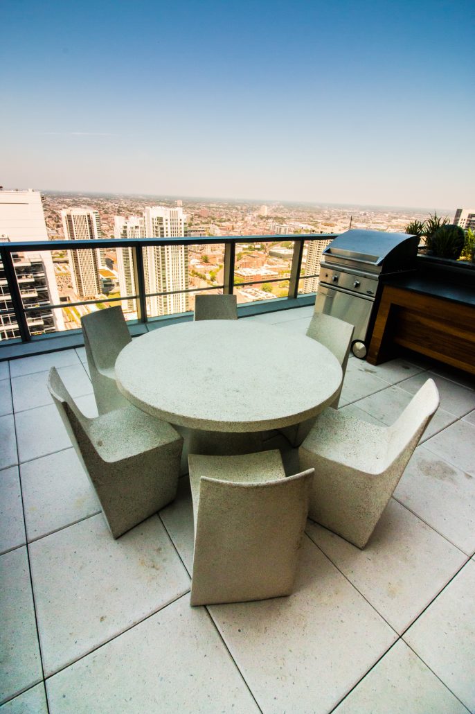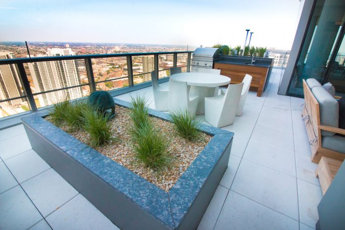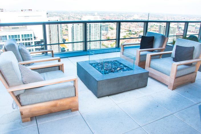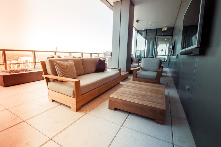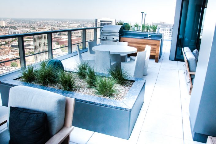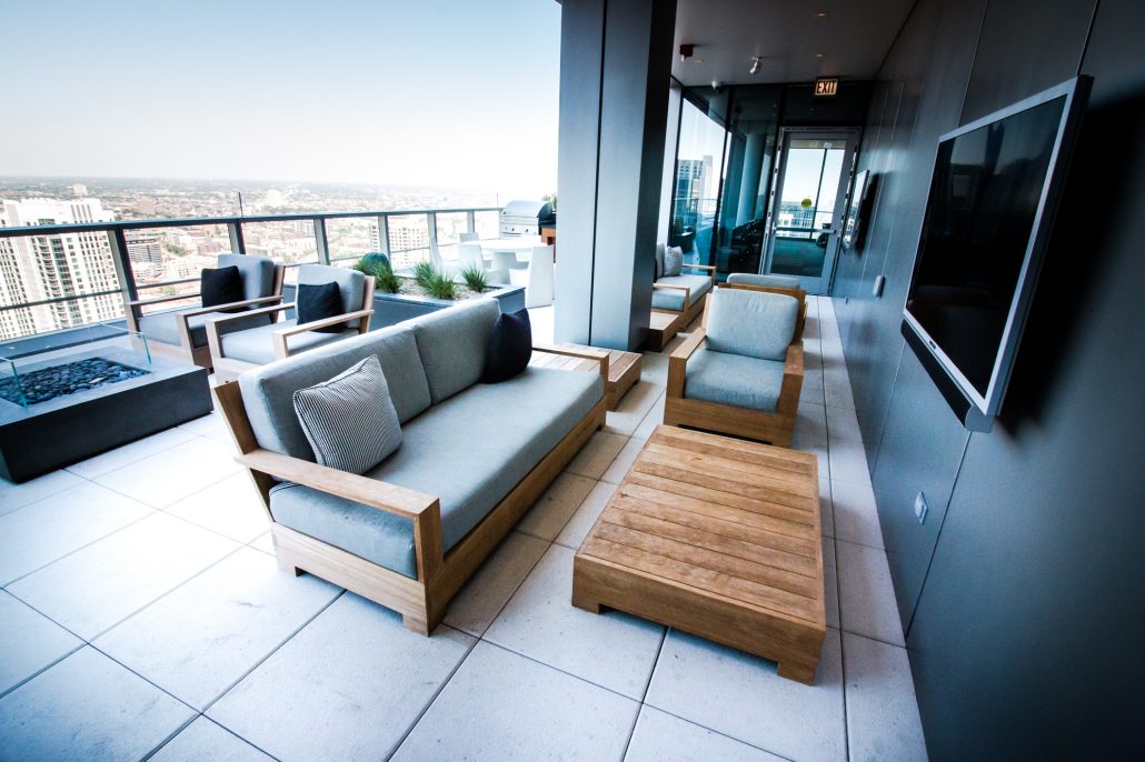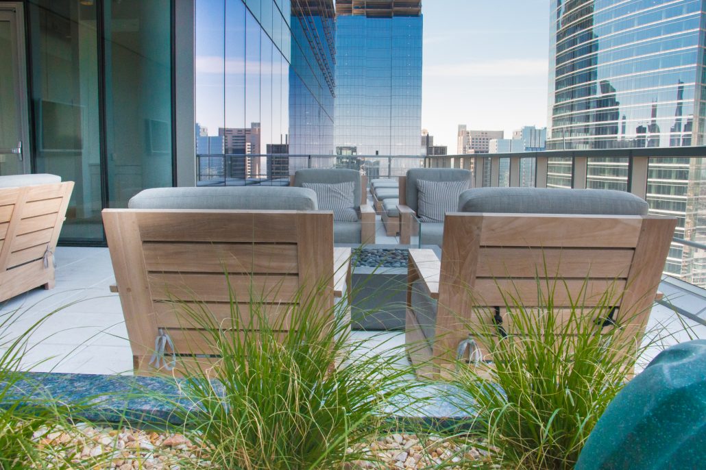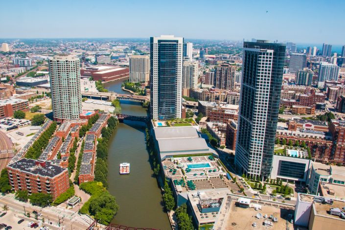 Elegantly responding to the confluence of the Chicago River, Wolf Point West’s design maximizes views in every direction rising 46 stories high. Residents will enjoy spectacular views from floor-to-ceiling windows, as well as inset balconies on select units. These brand new, stunning River North apartments feature refined architectural detailing with duotone, soft-close cabinetry, quartz countertops, undermount sinks and wood grained flooring. BOS furnished and installed common areas, business center, offices, and model units.