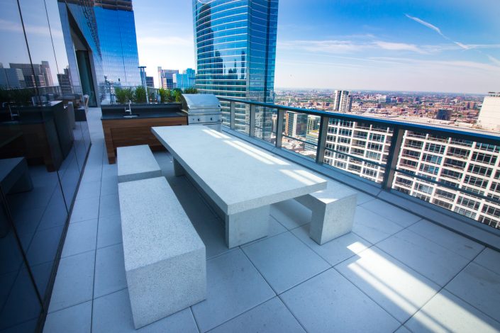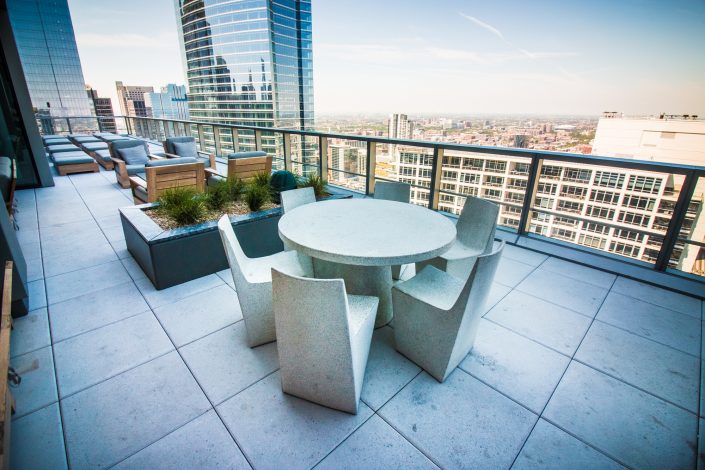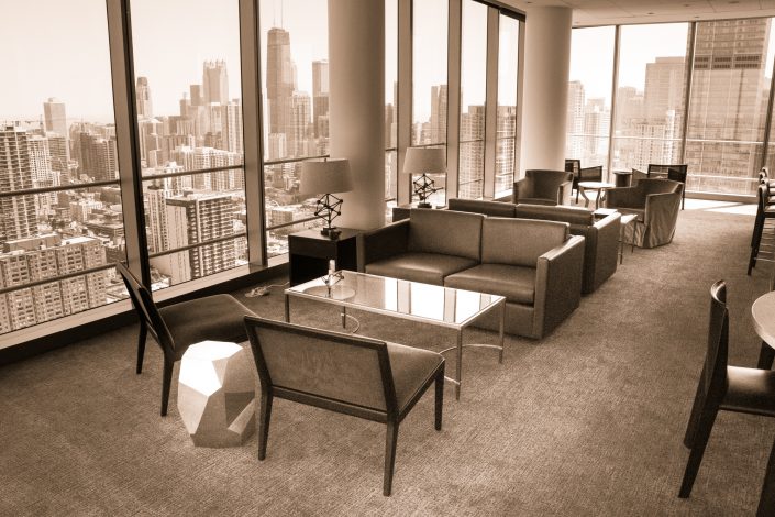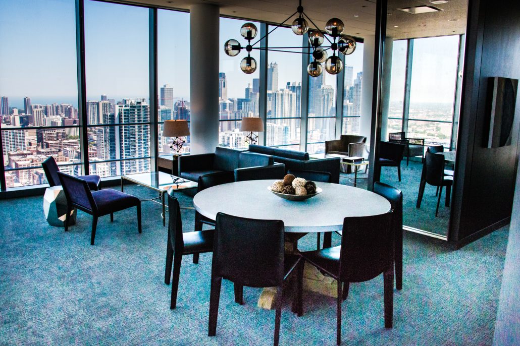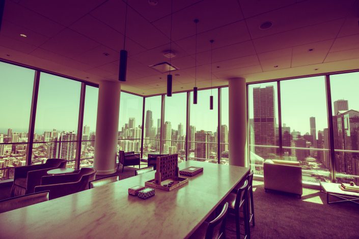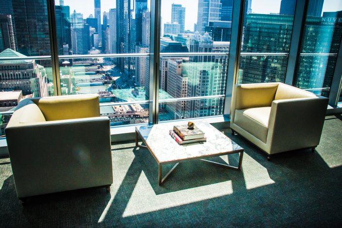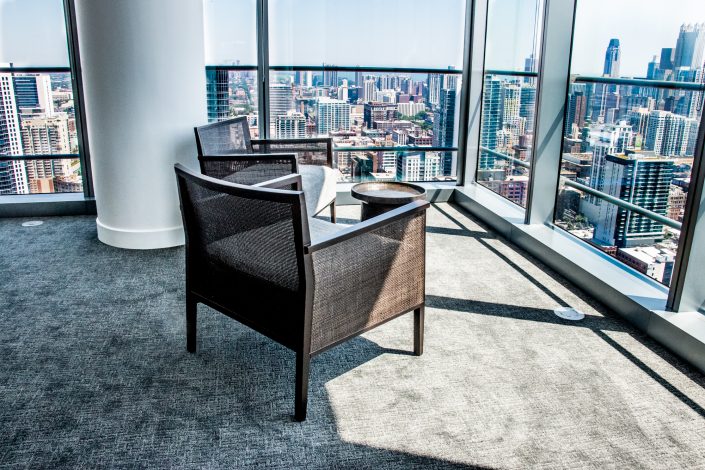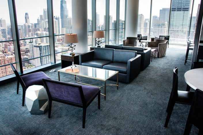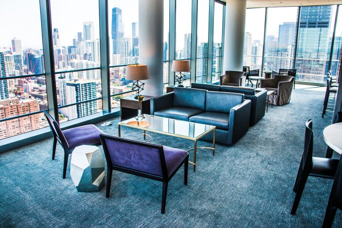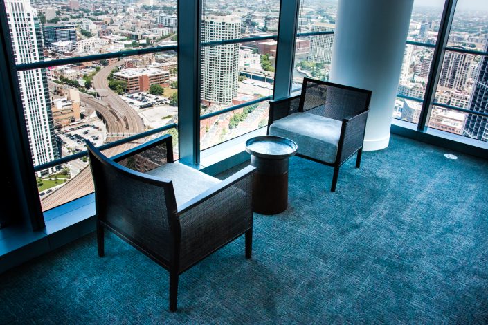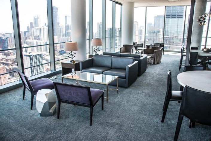 Elegantly responding to the confluence of the Chicago River, Wolf Point West’s design maximizes views in every direction rising 46 stories high. Residents will enjoy spectacular views from floor-to-ceiling windows, as well as inset balconies on select units. These brand new, stunning River North apartments feature refined architectural detailing with duotone, soft-close cabinetry, quartz countertops, undermount sinks and wood grained flooring. BOS furnished and installed common areas, business center, offices, and model units.
