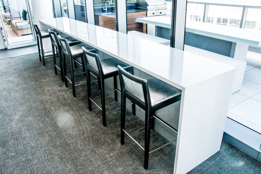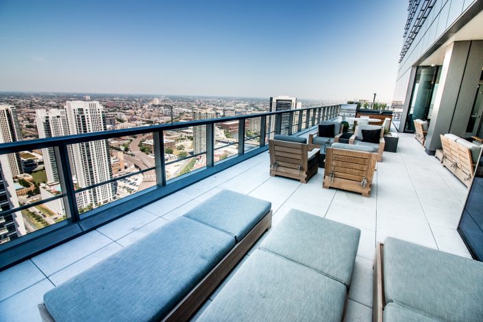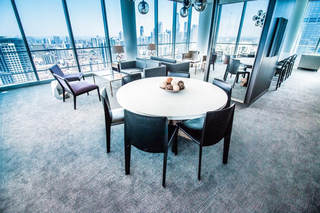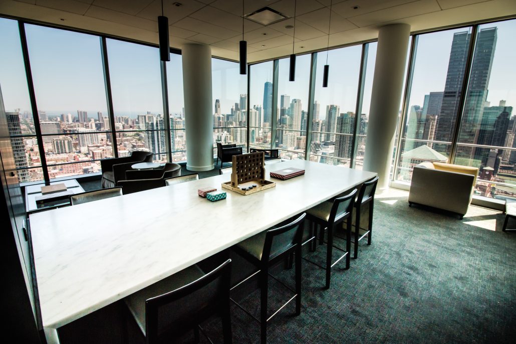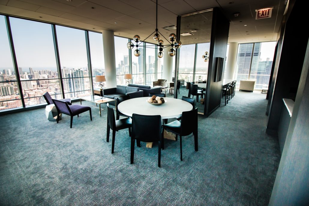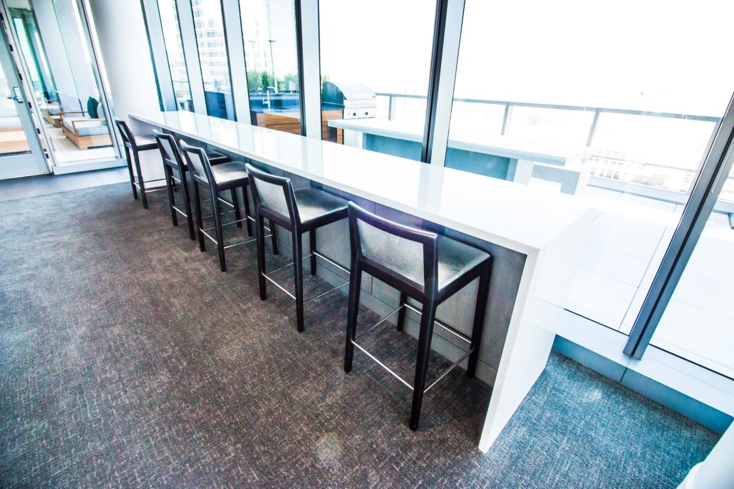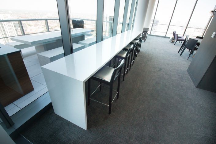 Elegantly responding to the confluence of the Chicago River, Wolf Point West’s design maximizes views in every direction rising 46 stories high. Residents will enjoy spectacular views from floor-to-ceiling windows, as well as inset balconies on select units. These brand new, stunning River North apartments feature refined architectural detailing with duotone, soft-close cabinetry, quartz countertops, undermount sinks and wood grained flooring. BOS furnished and installed common areas, business center, offices, and model units.